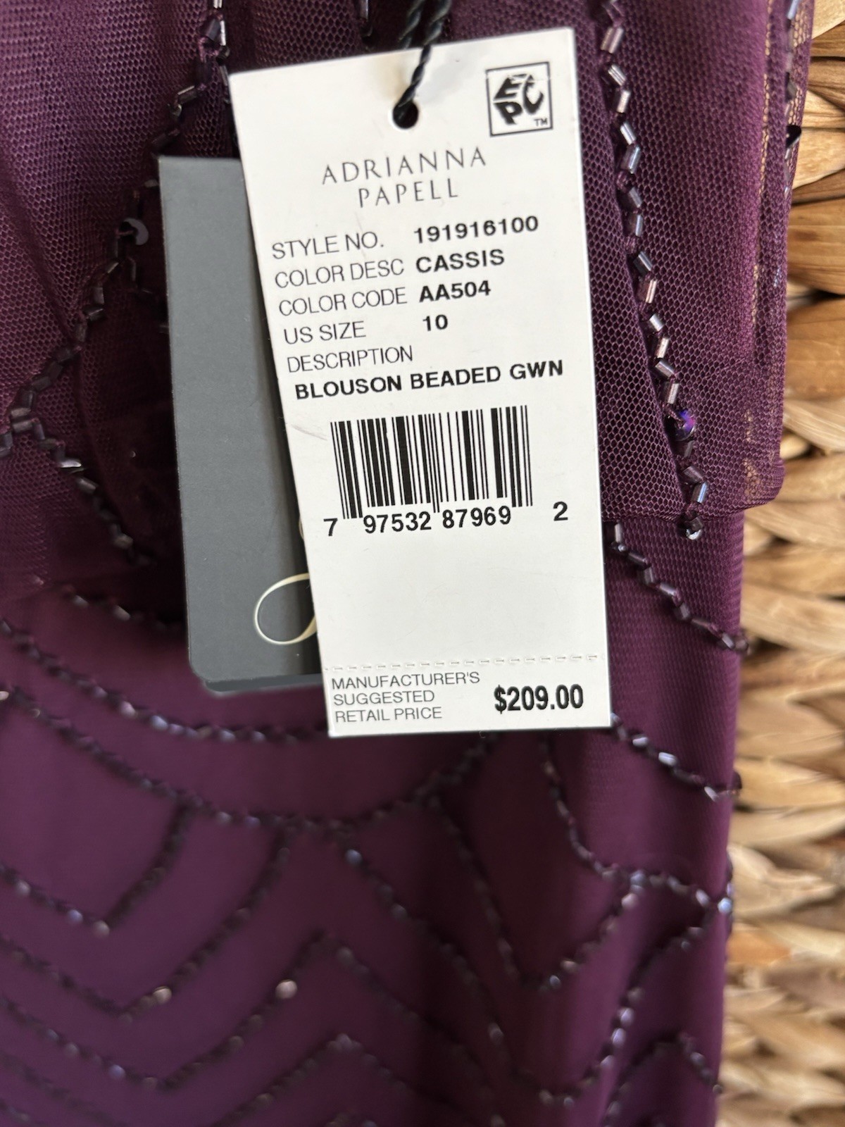 Adrianna Papell Women's Burgundy Beaded Short-Sleeve Gown Formal Dress Size 10