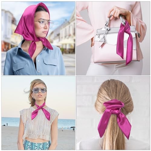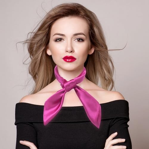 Women Silk Feeling Scarf 23.6'' Solid Color Square Satin Scarf Neck Rose Red