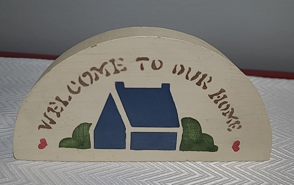 Wood Plaque Welcome to Our Home - Handmade Painted 5.5 x 2.75