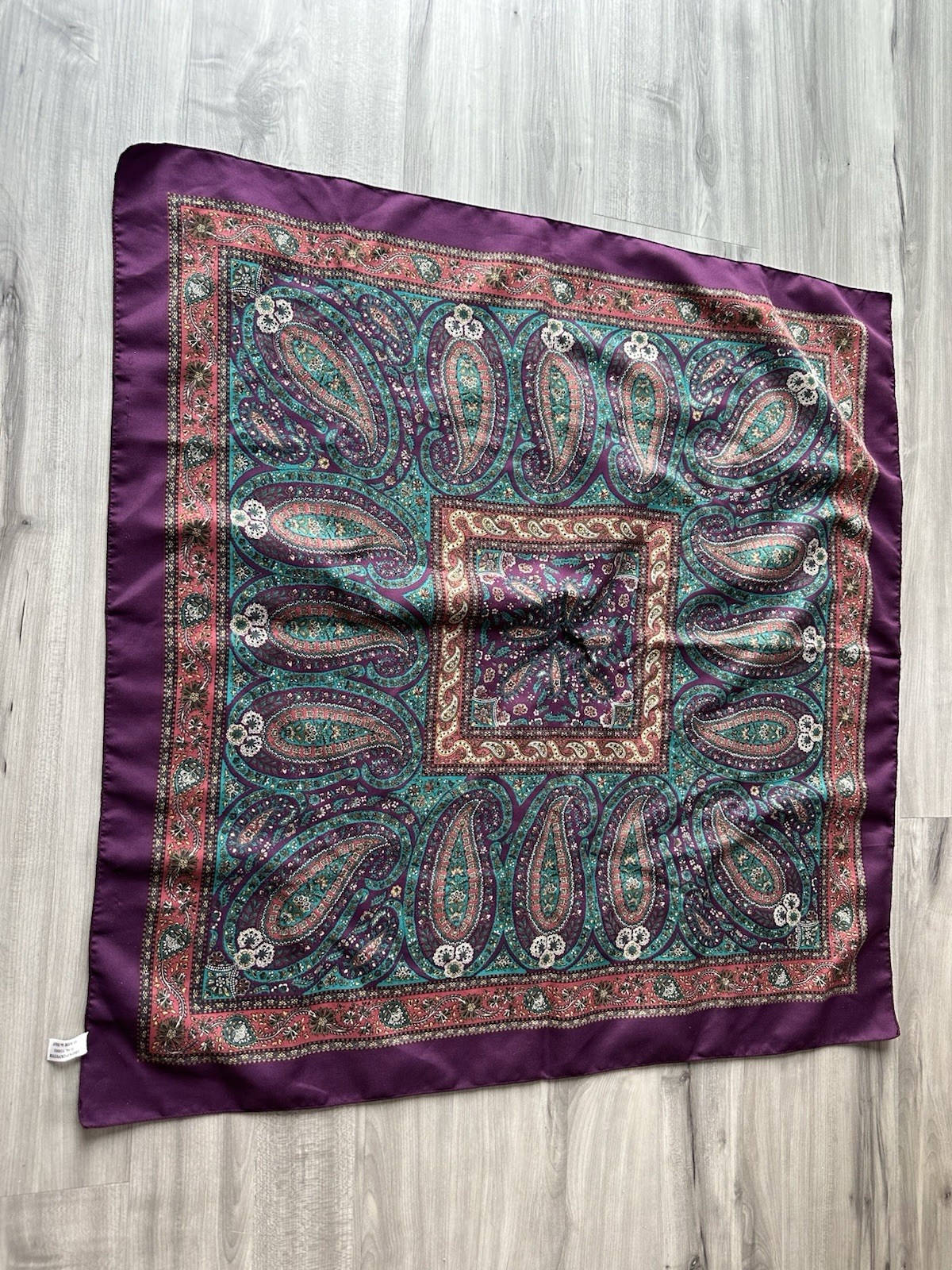 как выглядит Vintage Paisley Scarf Square Shaped 30x29.5 Made In Italy Aubergine 1980s фото