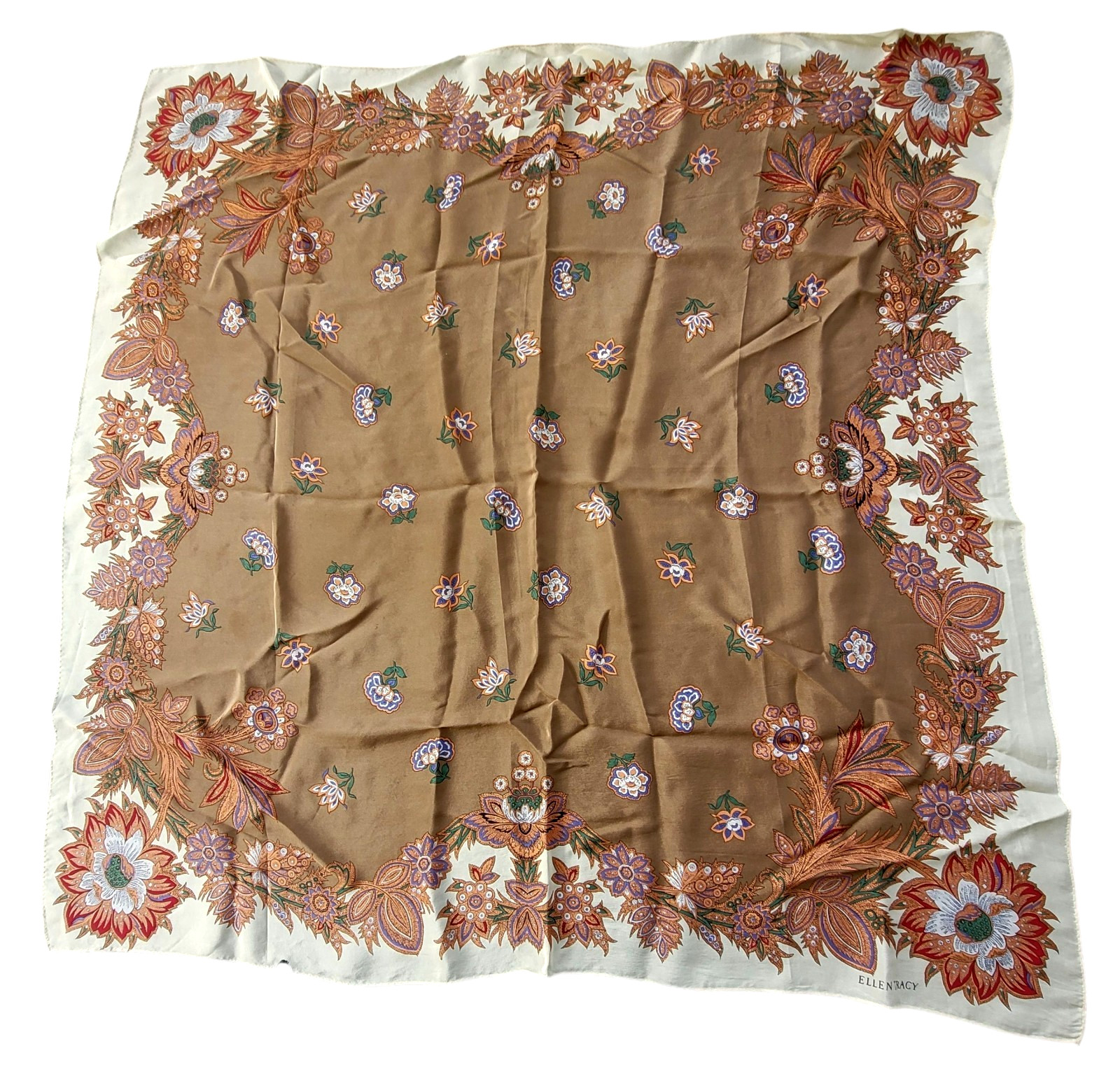 как выглядит Beautiful Ellen Tracy Square Silk Scarf Bronze Fall Floral Print 33" by 33" фото