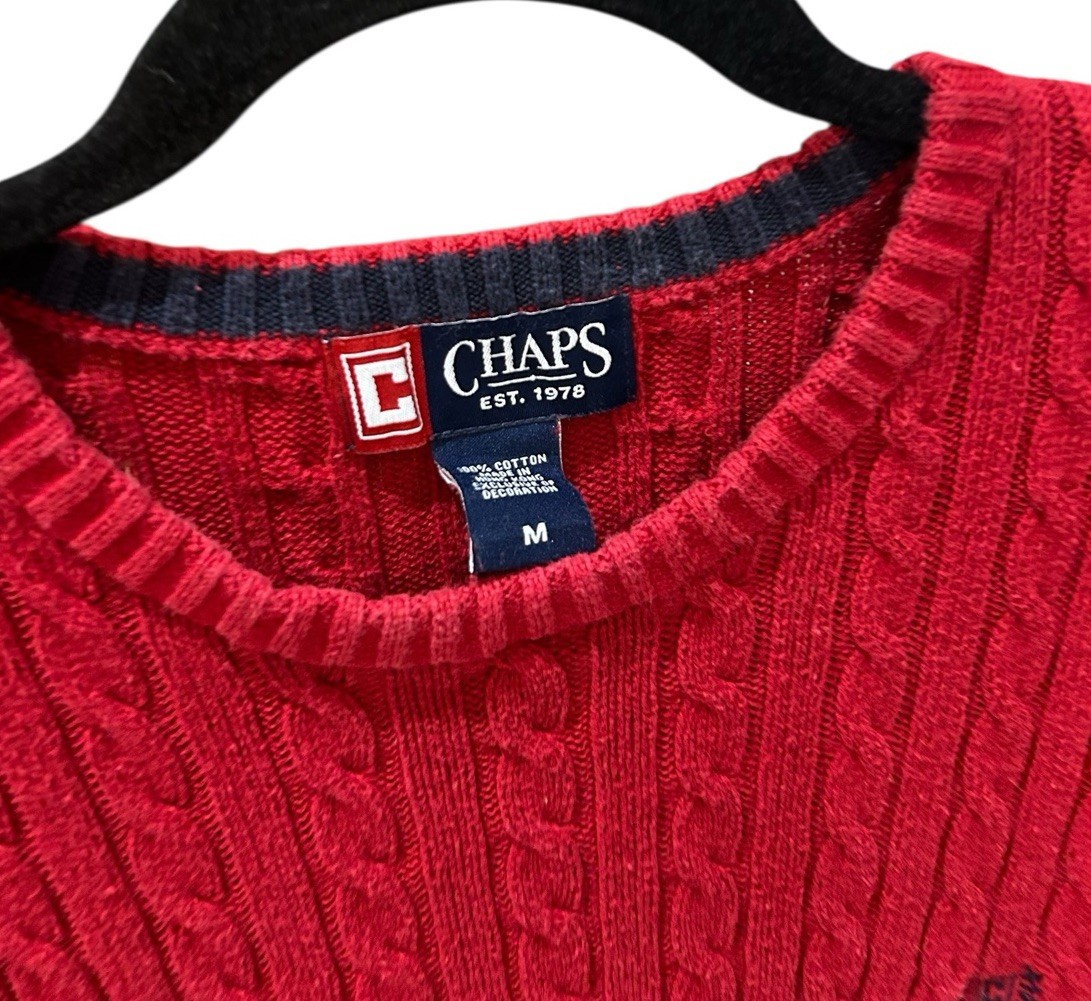Chaps Cable Knit Jumper Sweater Red Top Men s Medium M Classic Embroidered Logo