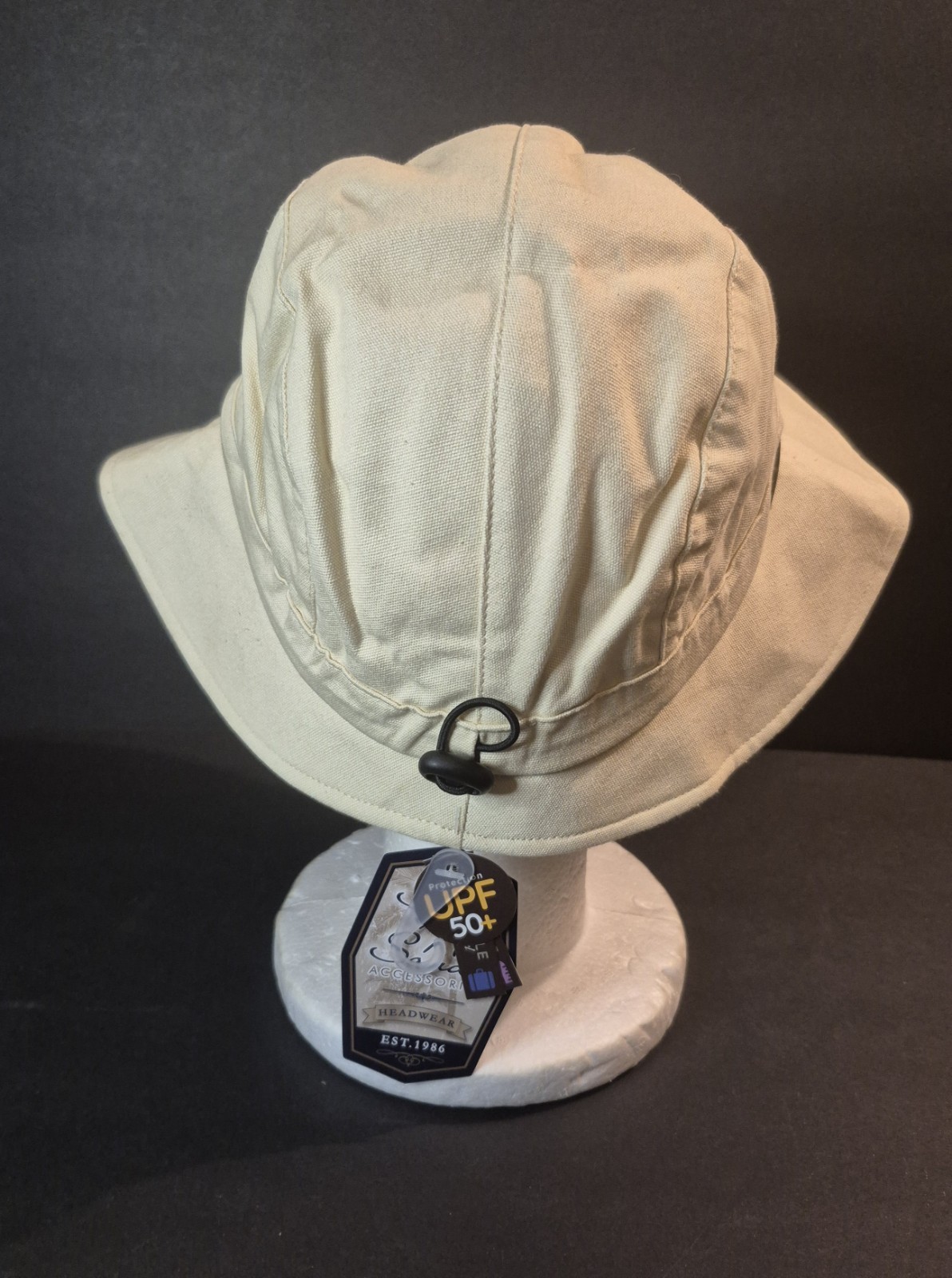 Sun 'N' Sand Women's Beige Cotton Hat With Drawstring Sizer 3 Brim - OSFM