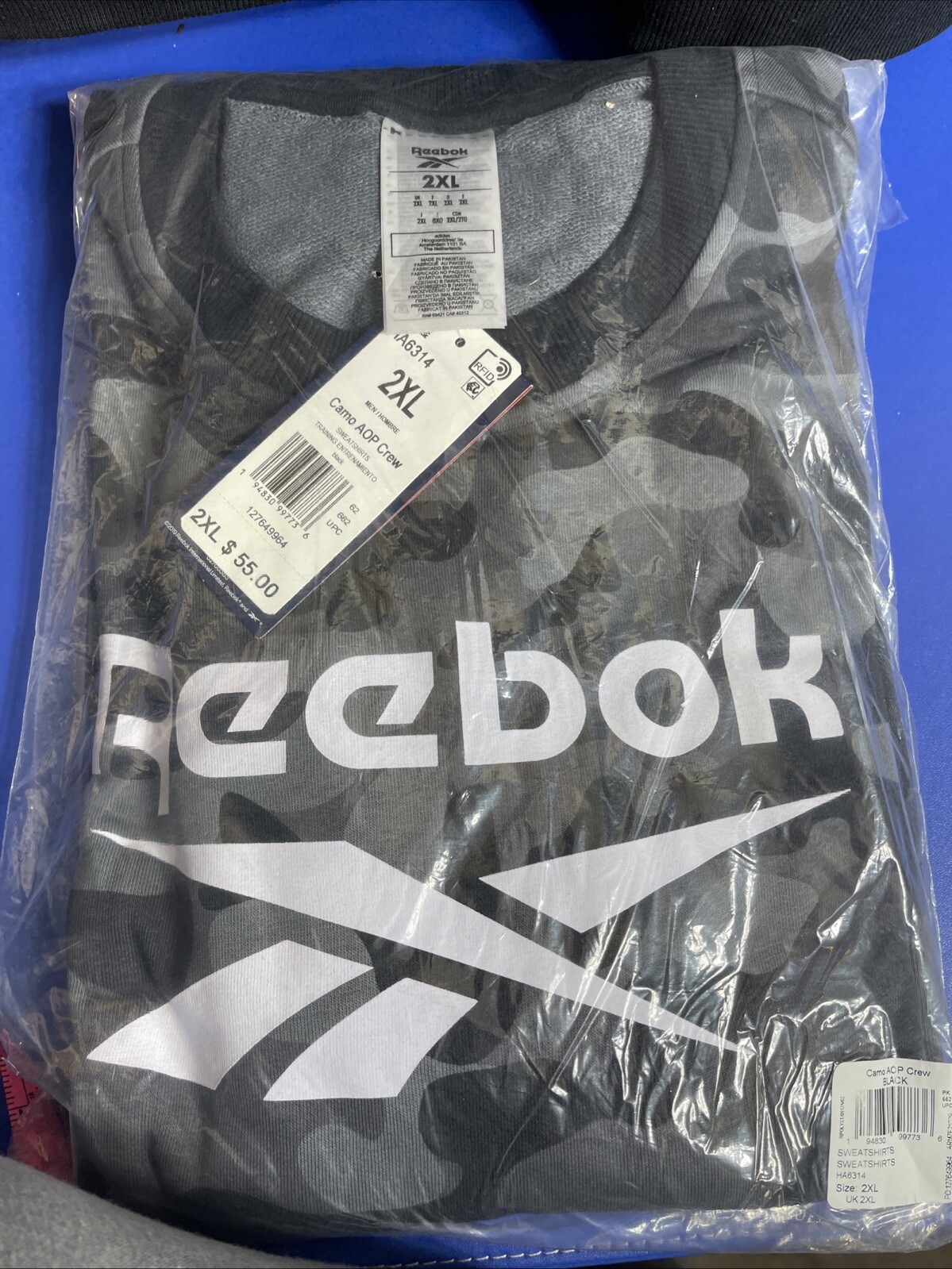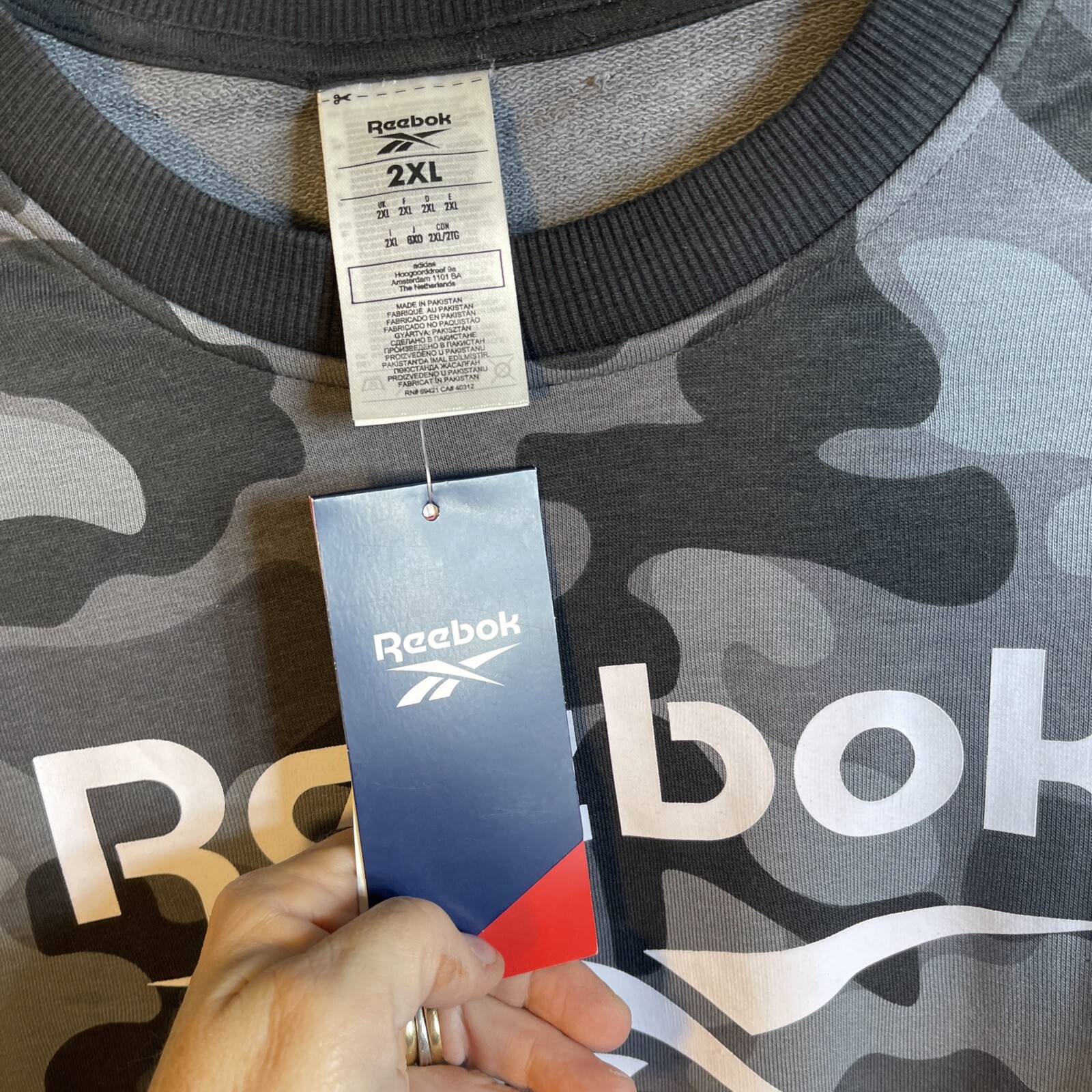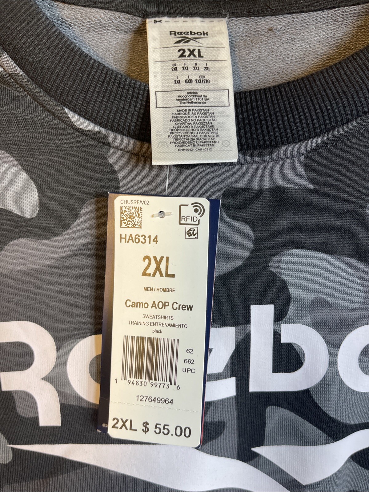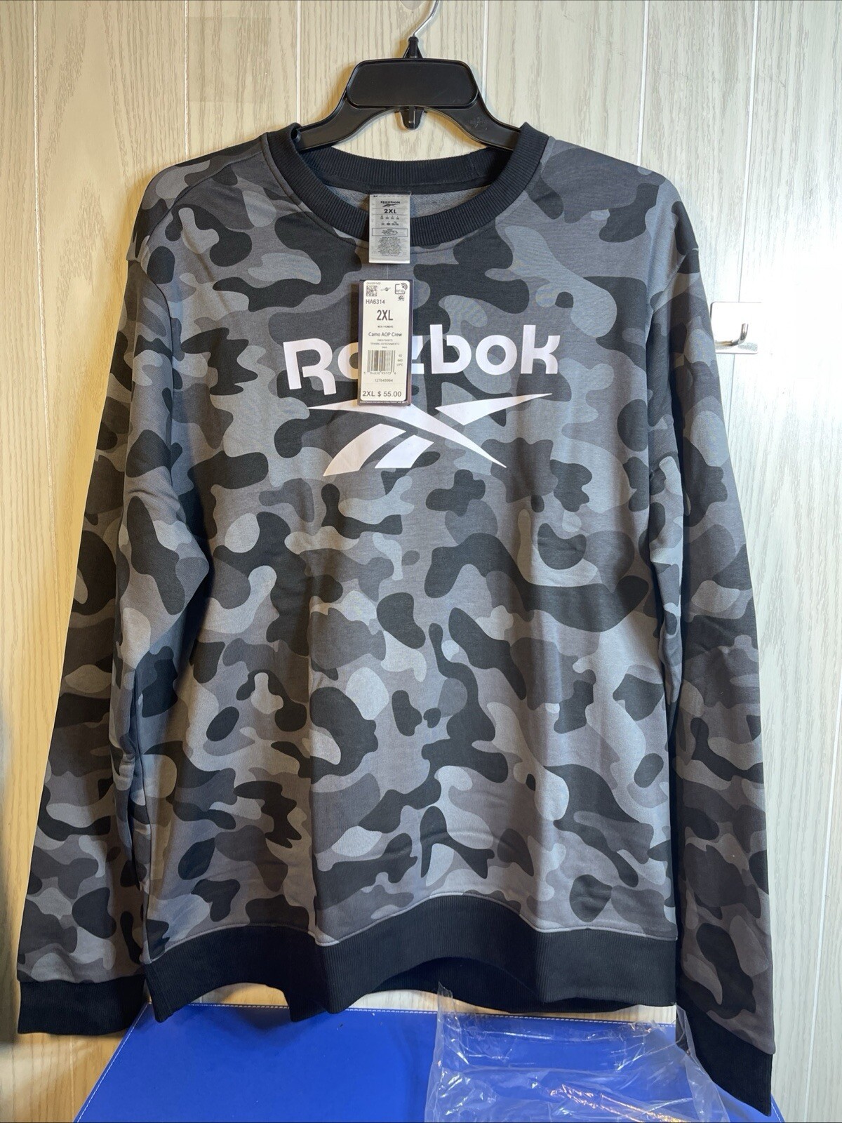 NEW Reebok Camo Sweatshirt Mens 2XL Big Logo Training Crewneck w/Tags Long Sleev