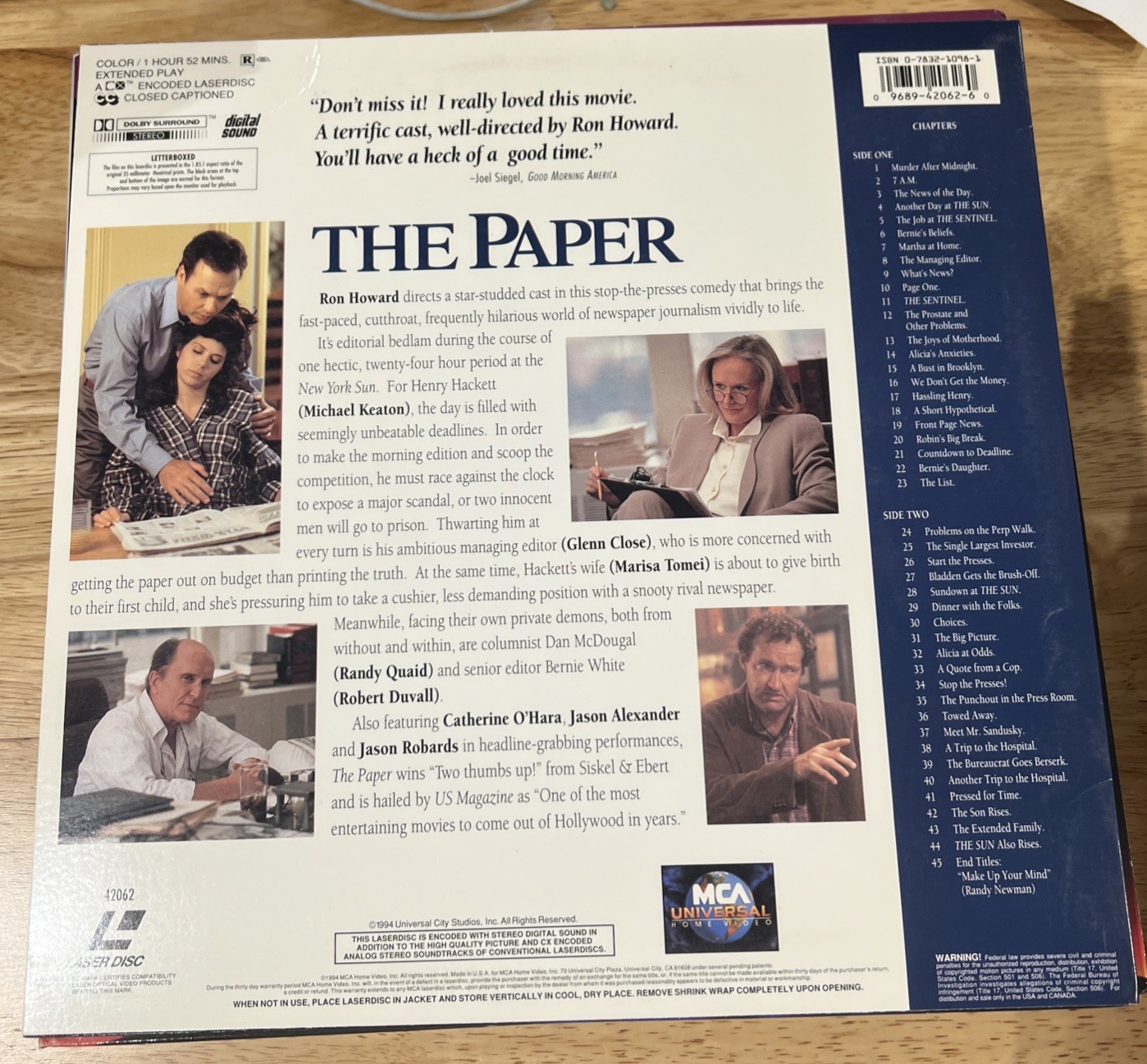 THE PAPER LASERDISC Michael Keaton, Glenn Close, Robert Duvall LETTERBOX LD