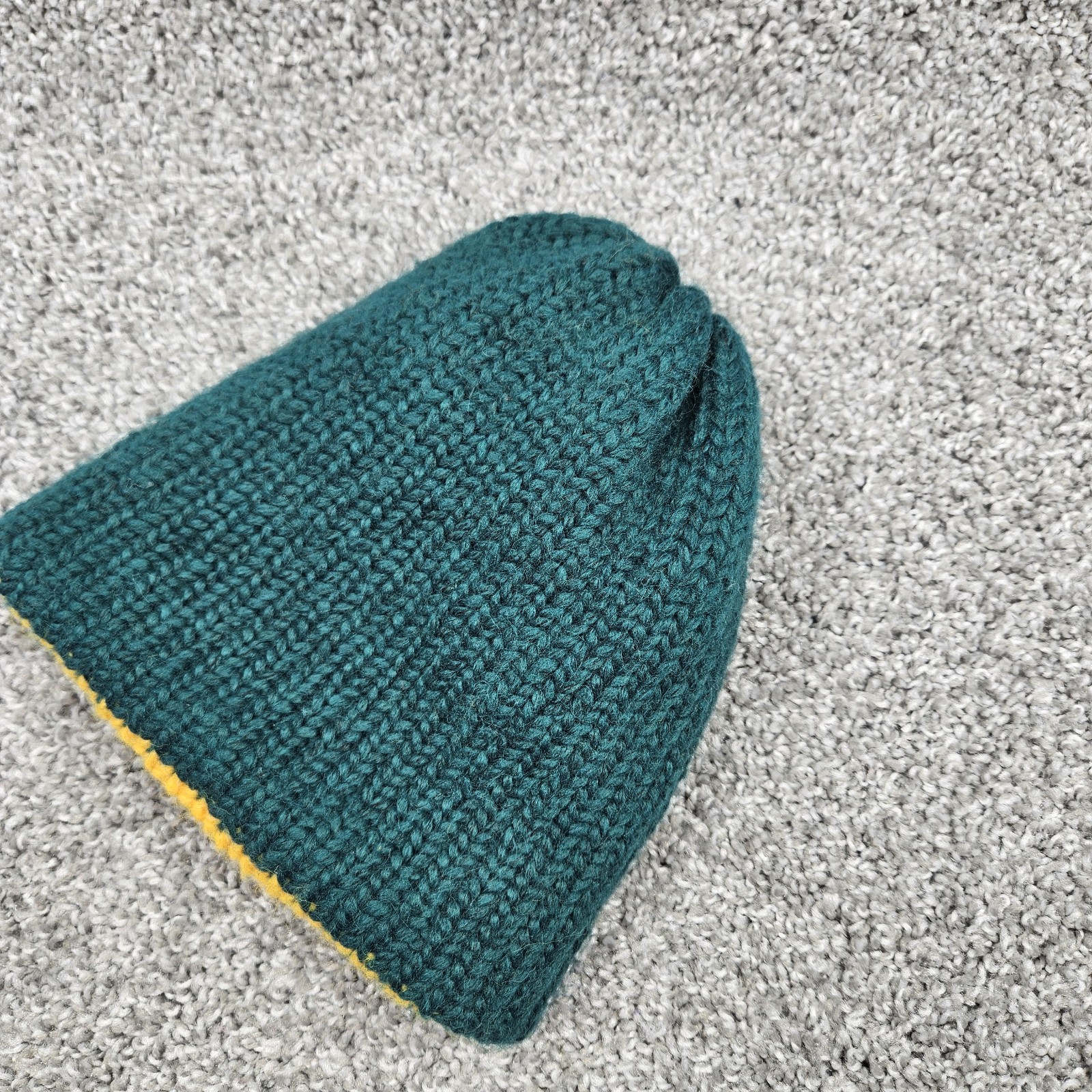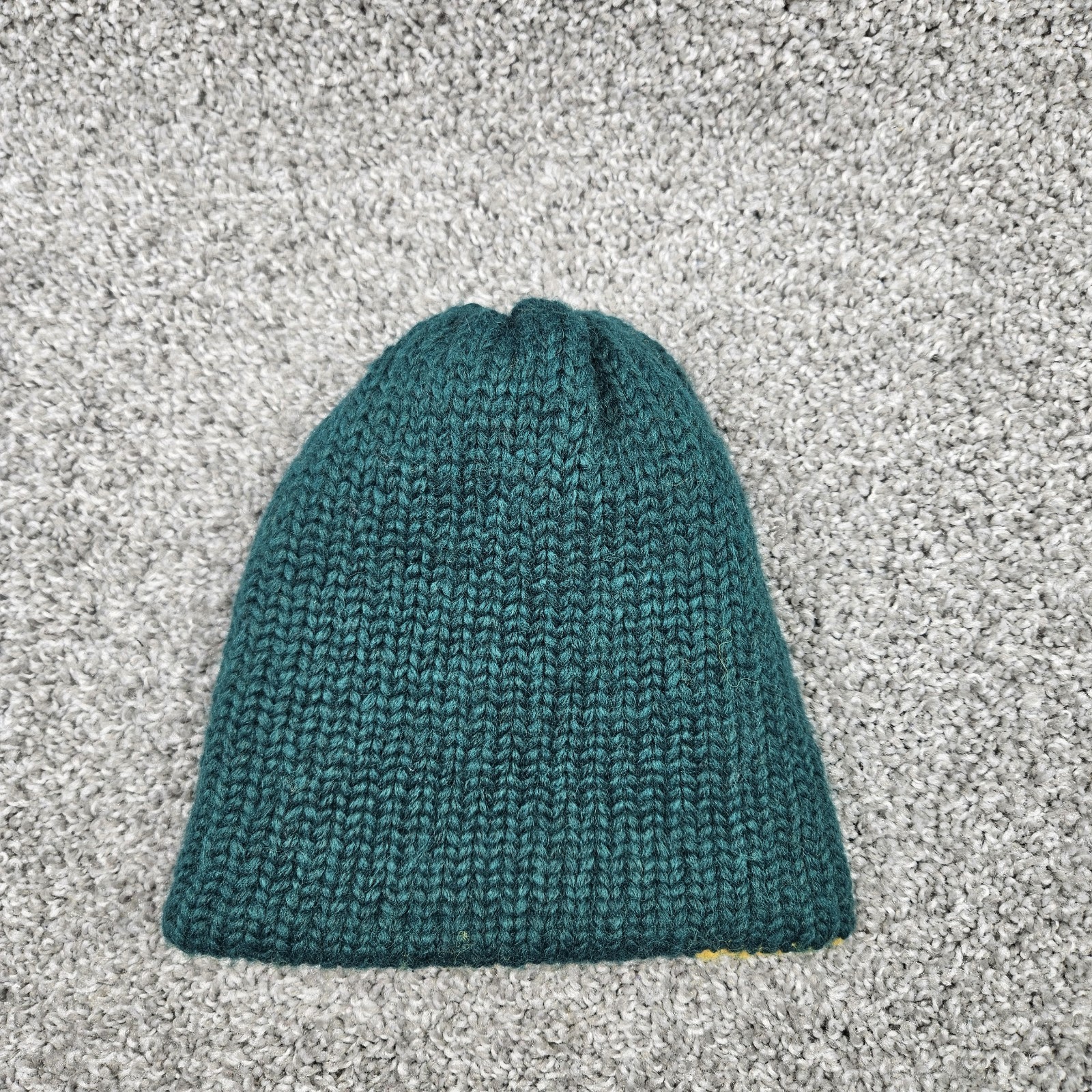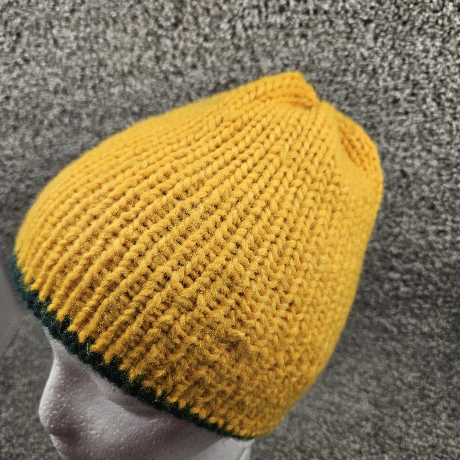 как выглядит Handmade Knit Beanie Hat Toque Toboggan Size 2-6 Year Green/Gold Double Layer фото