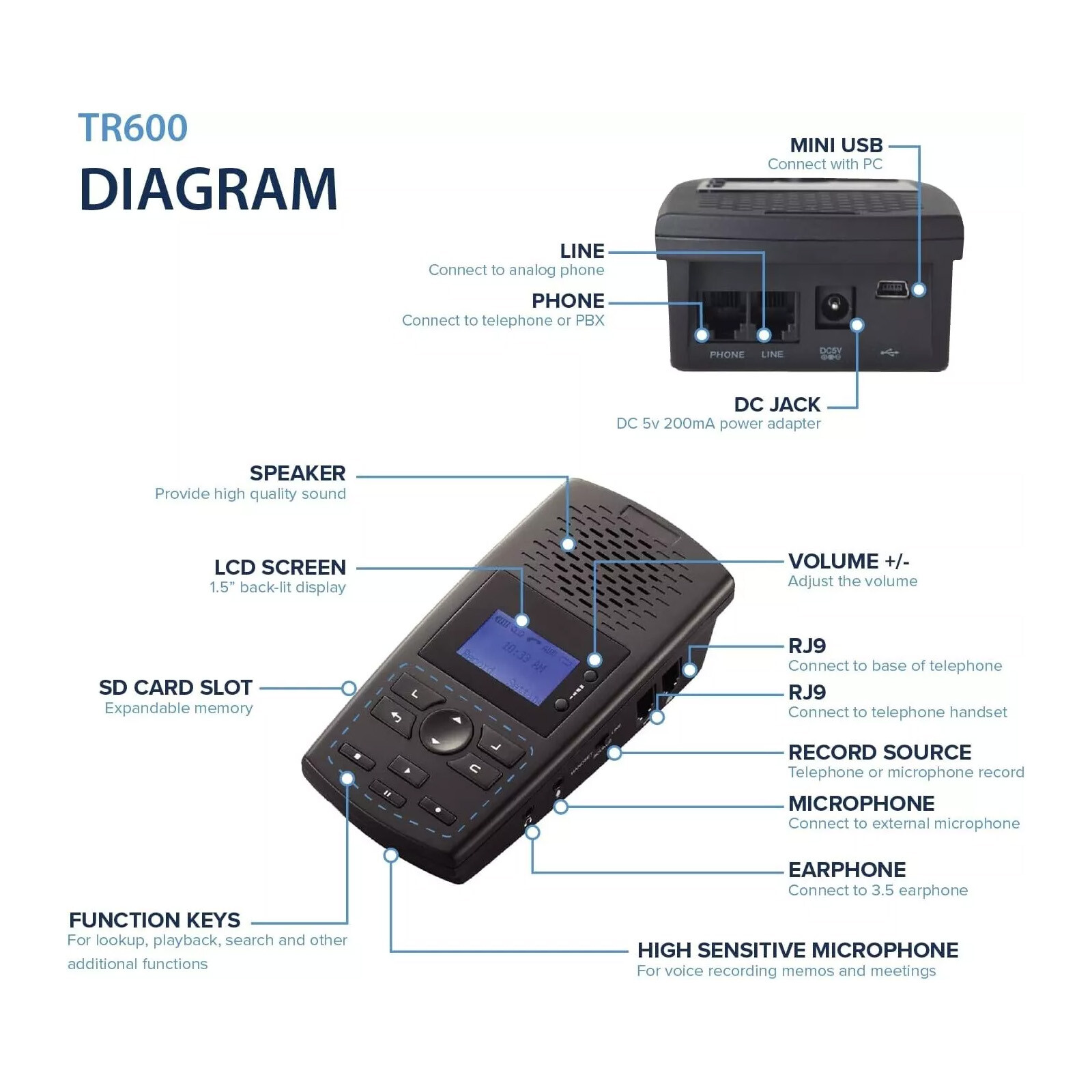 AR100 Landline Phone Call Recorder, Automatic Telephone Recording Device9w