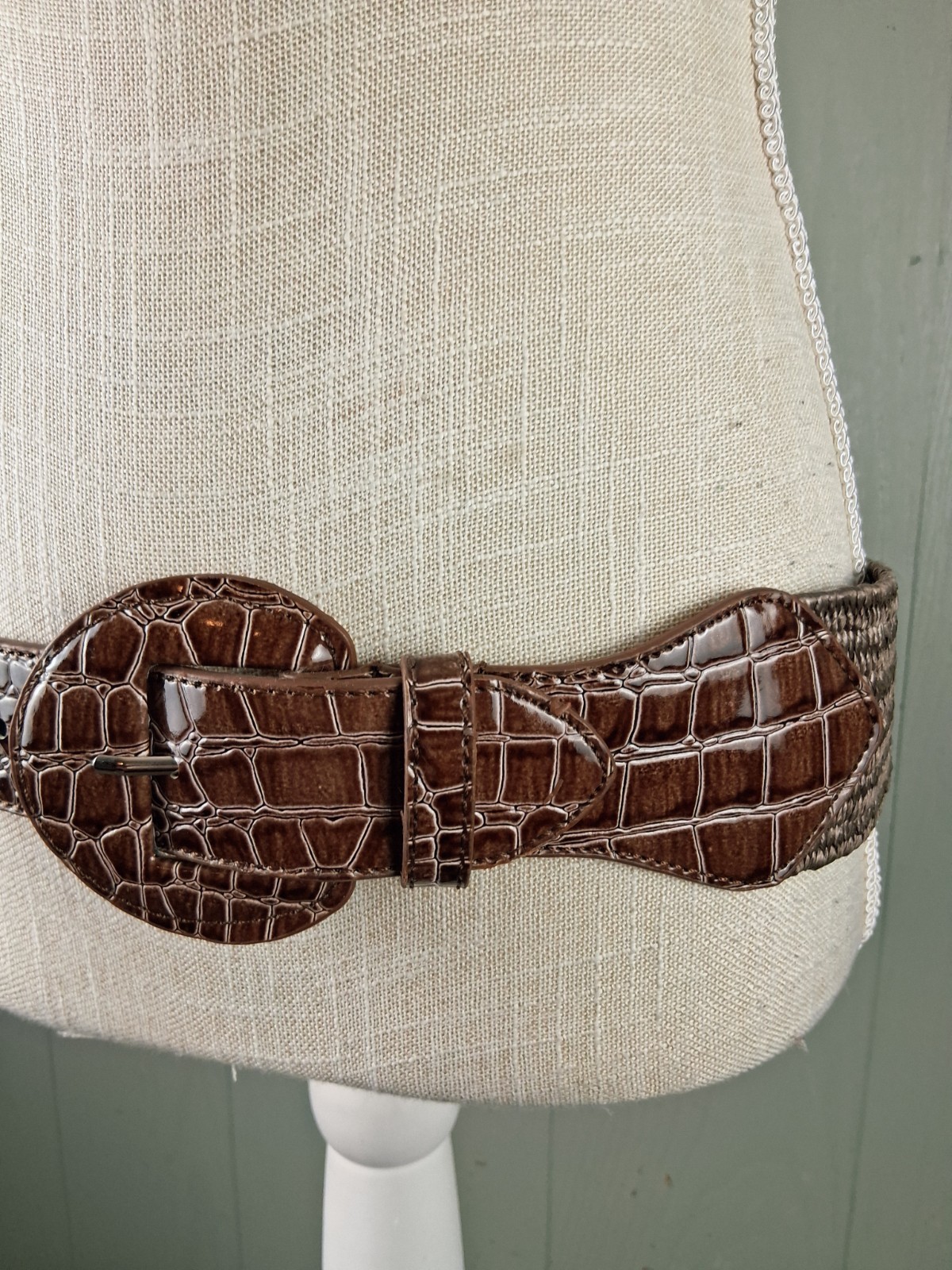 как выглядит Vintage 90s Stretch Elastic Leather Wide Waist Belt Brown L/ XL Chic Cinch фото
