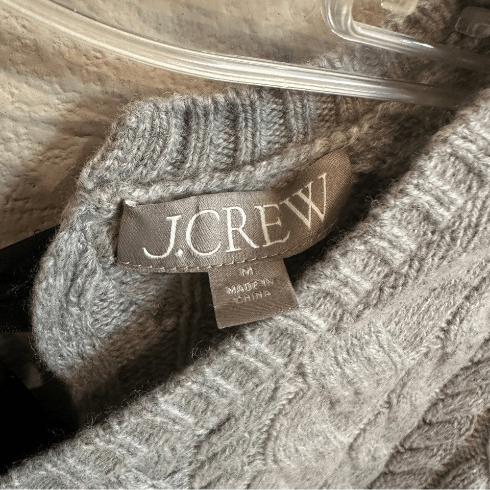 как выглядит J. Crew Tie-Back Cable Knit Sweater Gray Wool Blend Pullover Neutral NWT M фото
