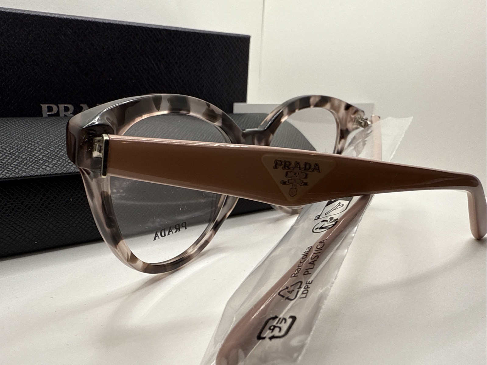 как выглядит Prada Eyeglasses VPR 11R Sz 52 17 140 ROJ-101 Pink Havana Cat Eye Frame Italy фото
