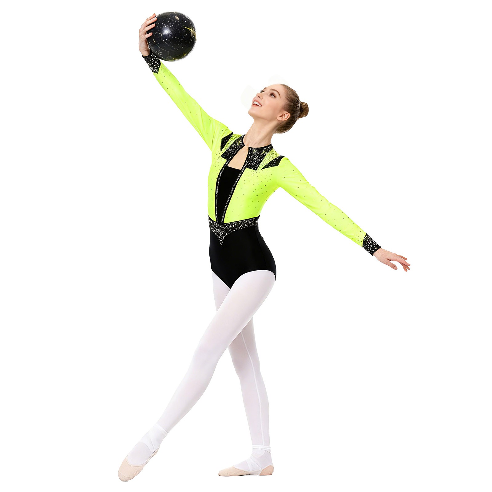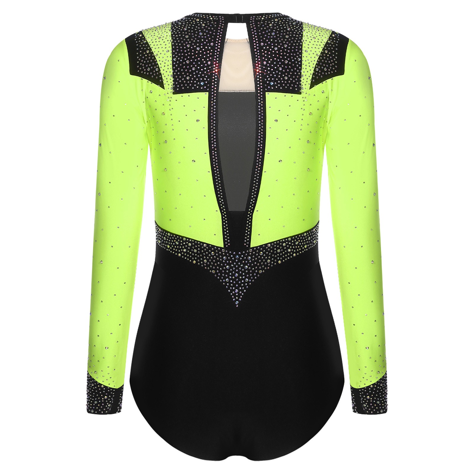 Womens Leotard Hollow Bodysuit Practice Costumes Back Rhinestones Performance