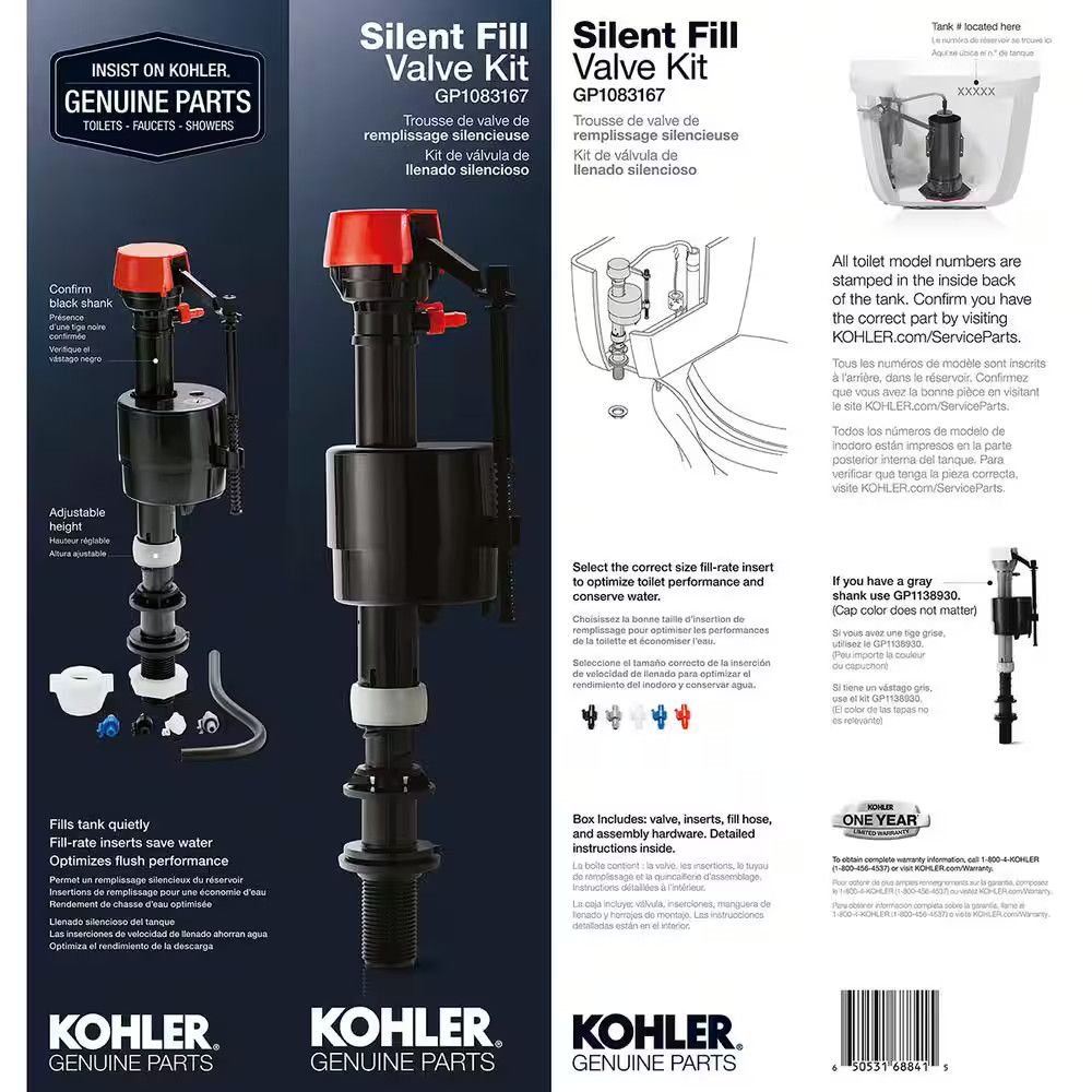 KOHLER Silent Fill High Rate Toilet Valve Kit GP1083167