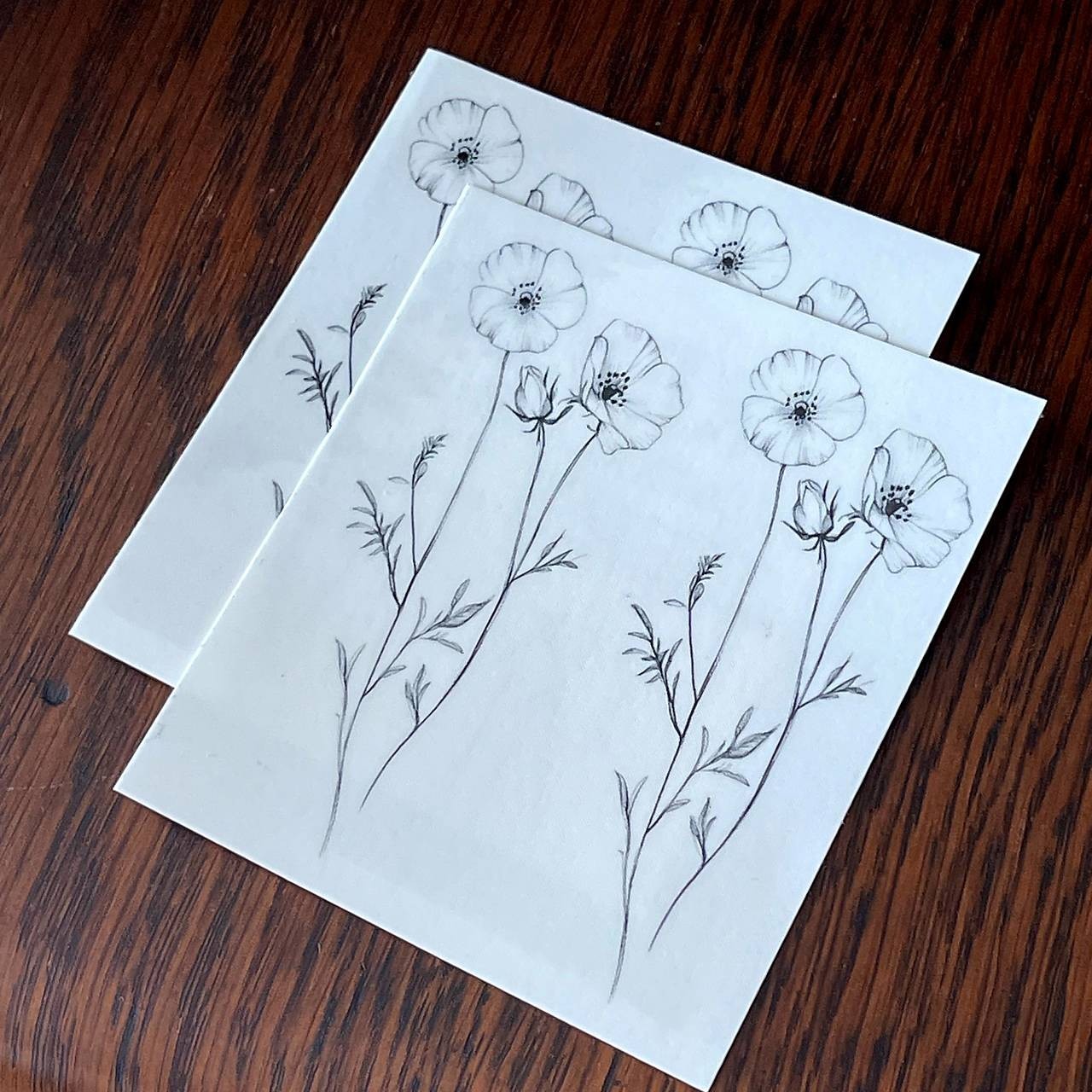 Temporary tattoo sheet Poppy, Tiny Black Floral Tattoos, Flower Tattoos