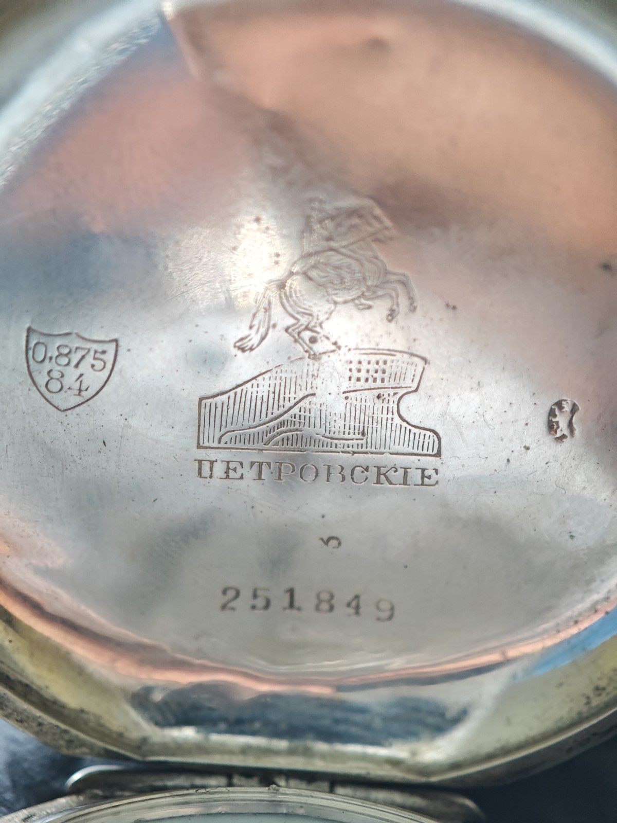 как выглядит Antique Russian Petrovskie Silver Pocket Watch 0.875 Silver ,15 Rubis,Working фото
