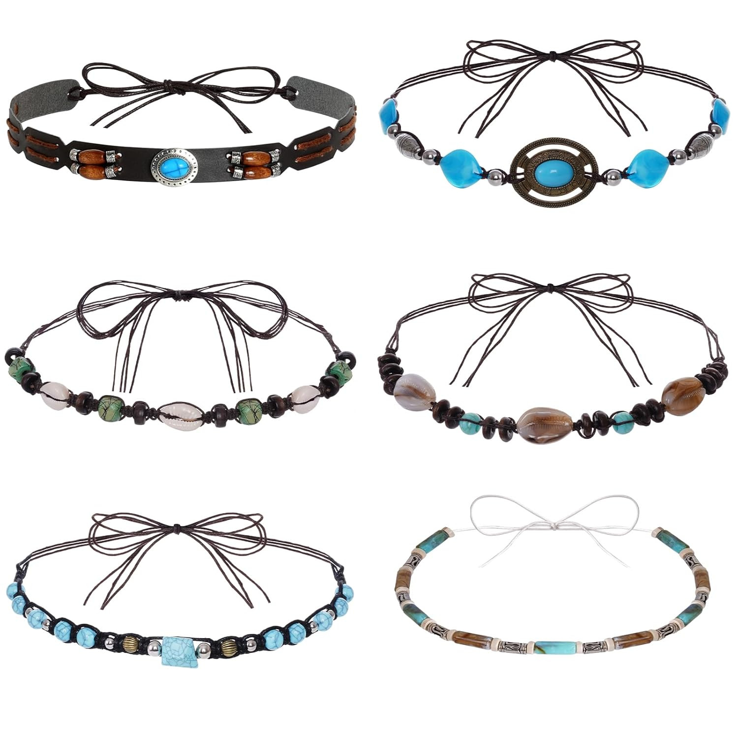 6Pcs Cowboy Hat Bands Ethnic Western Hat Bands for Cowboy Hats Leather Cowgirl T