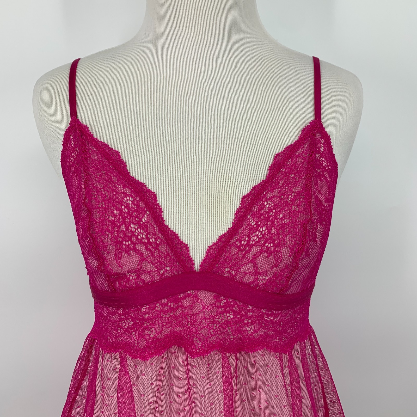 Victoria's Secret Babydoll Dress Small Pink Lace Sheer Floral Polka Dot Lingerie