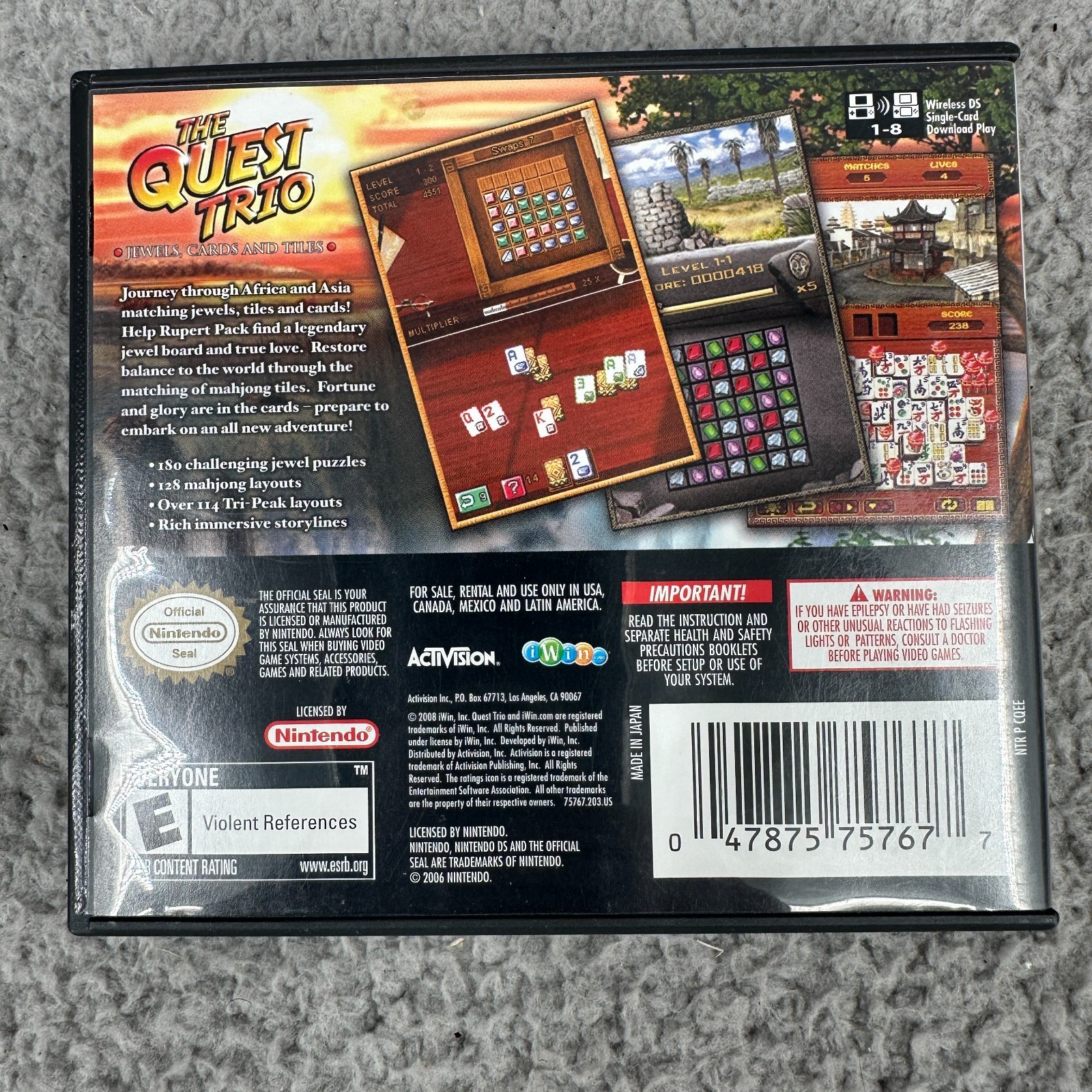 The Quest Trio Nintendo DS CASE ONLY NO GAME Jewel Quest Mah Jong Activision