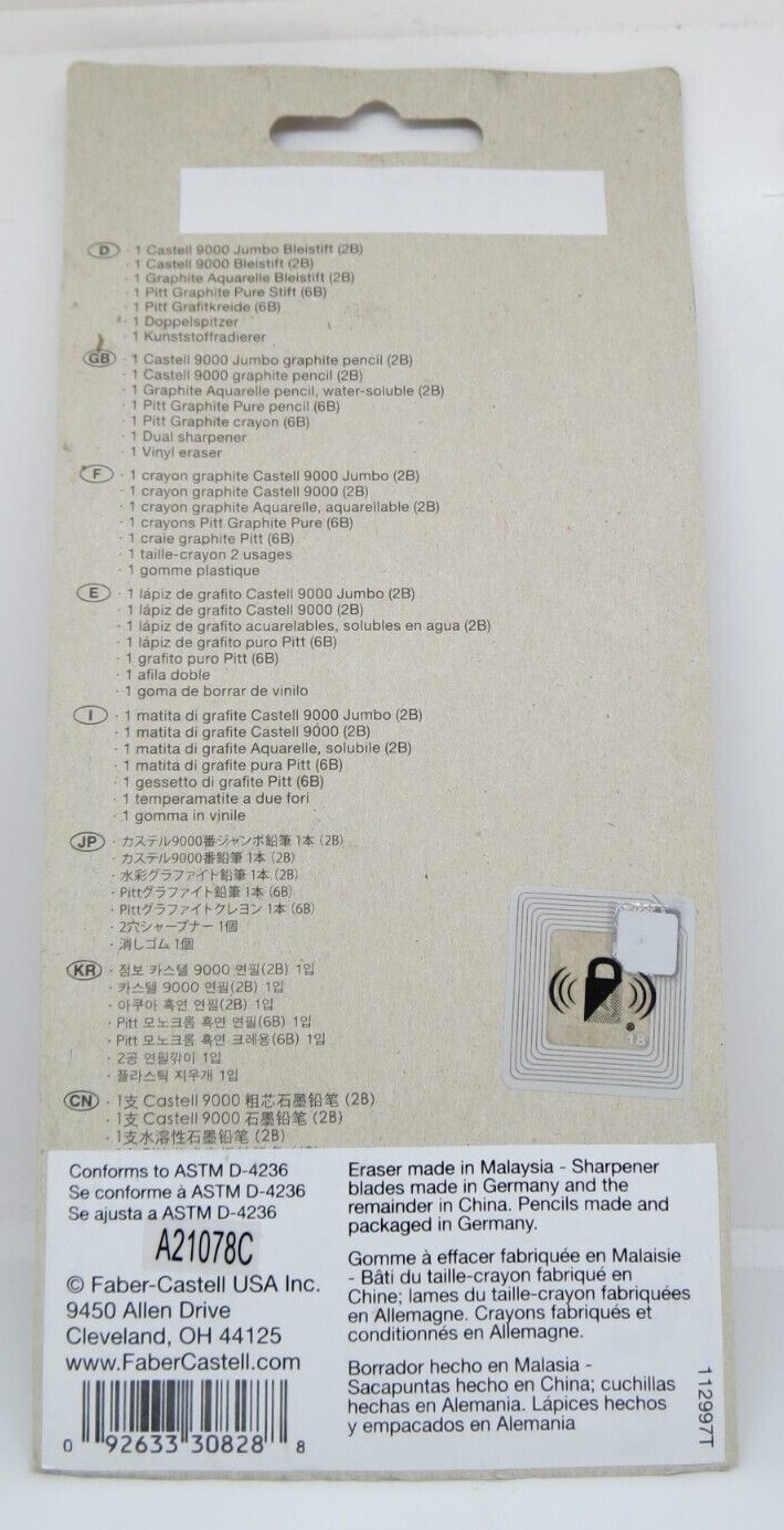 FABER-CASTELL 112997T PITT GRAPHITE SET W/PENCILS CRAYONS ACCESSORIES 7PC NEW