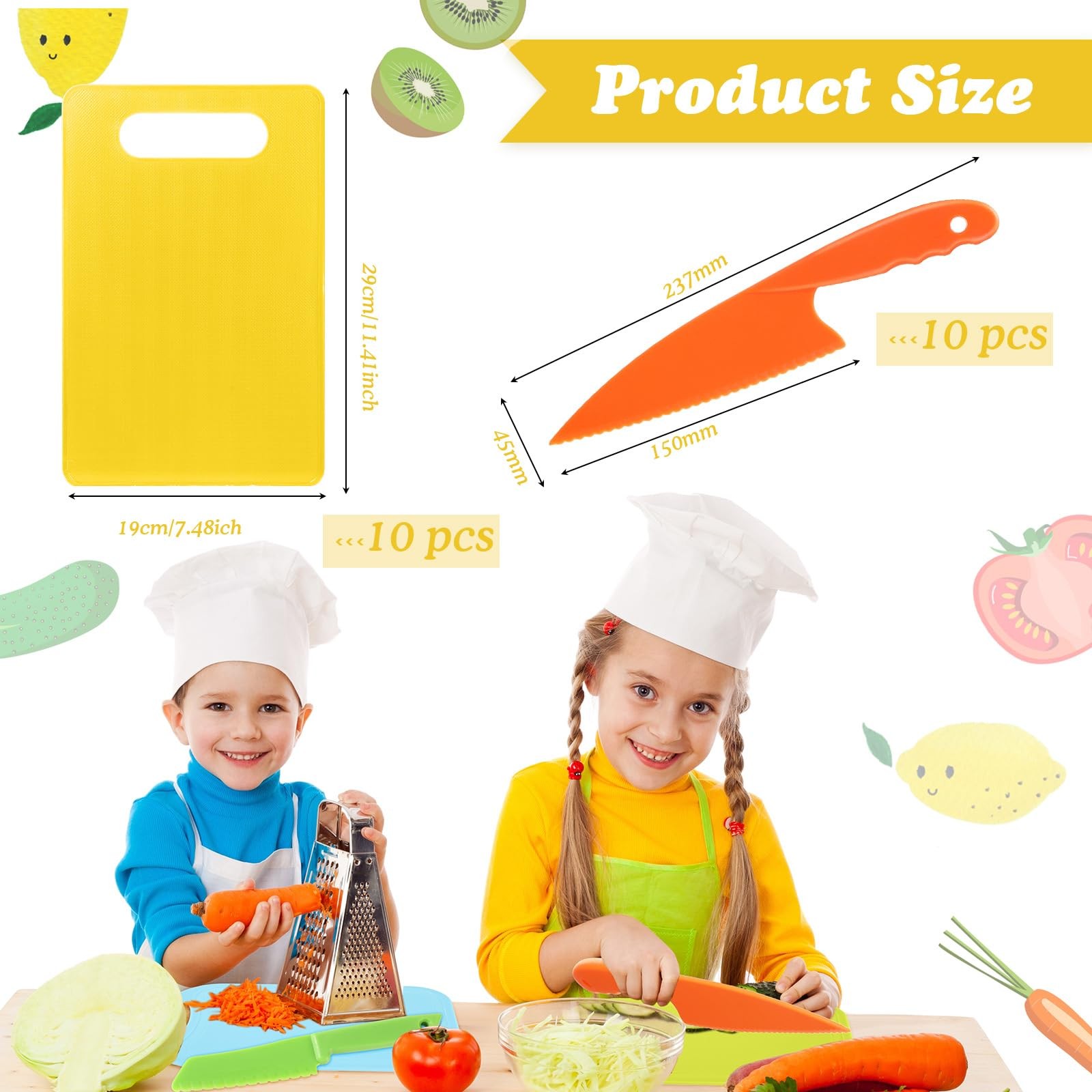 20 Pcs Kids Plastic Knife Set with Cutting Board Toddler Knife Tools, Includi...
