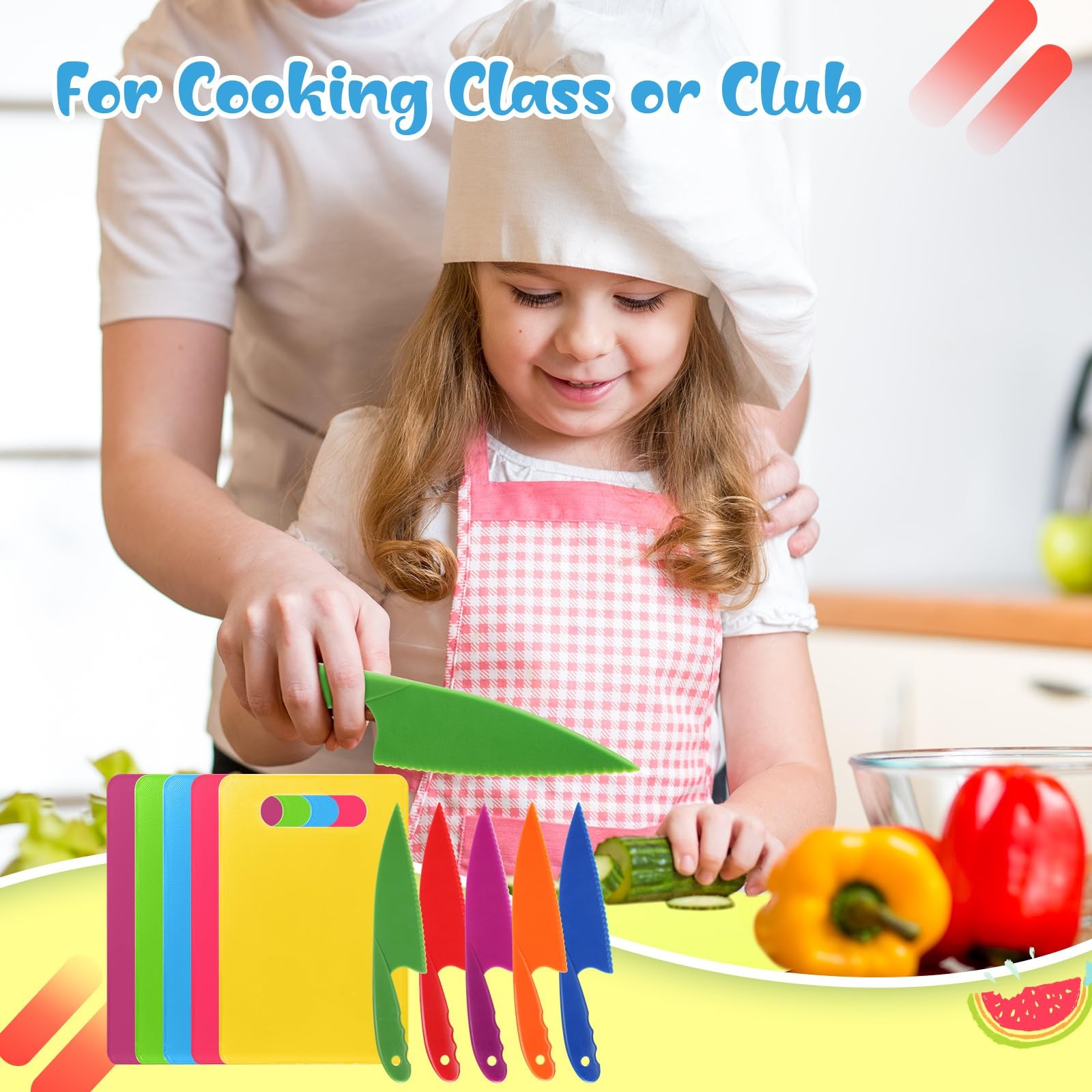 как выглядит 20 Pcs Kids Plastic Knife Set with Cutting Board Toddler Knife Tools, Includi... фото