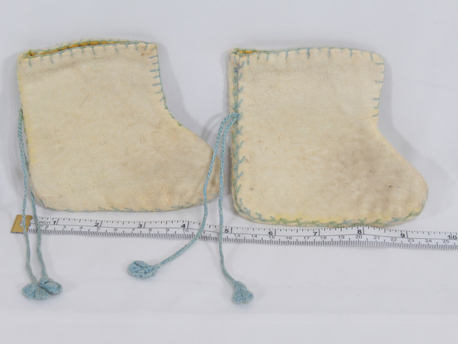 Antique Felt Baby Booties Toddler Shoes Handmade. Use for Dolls