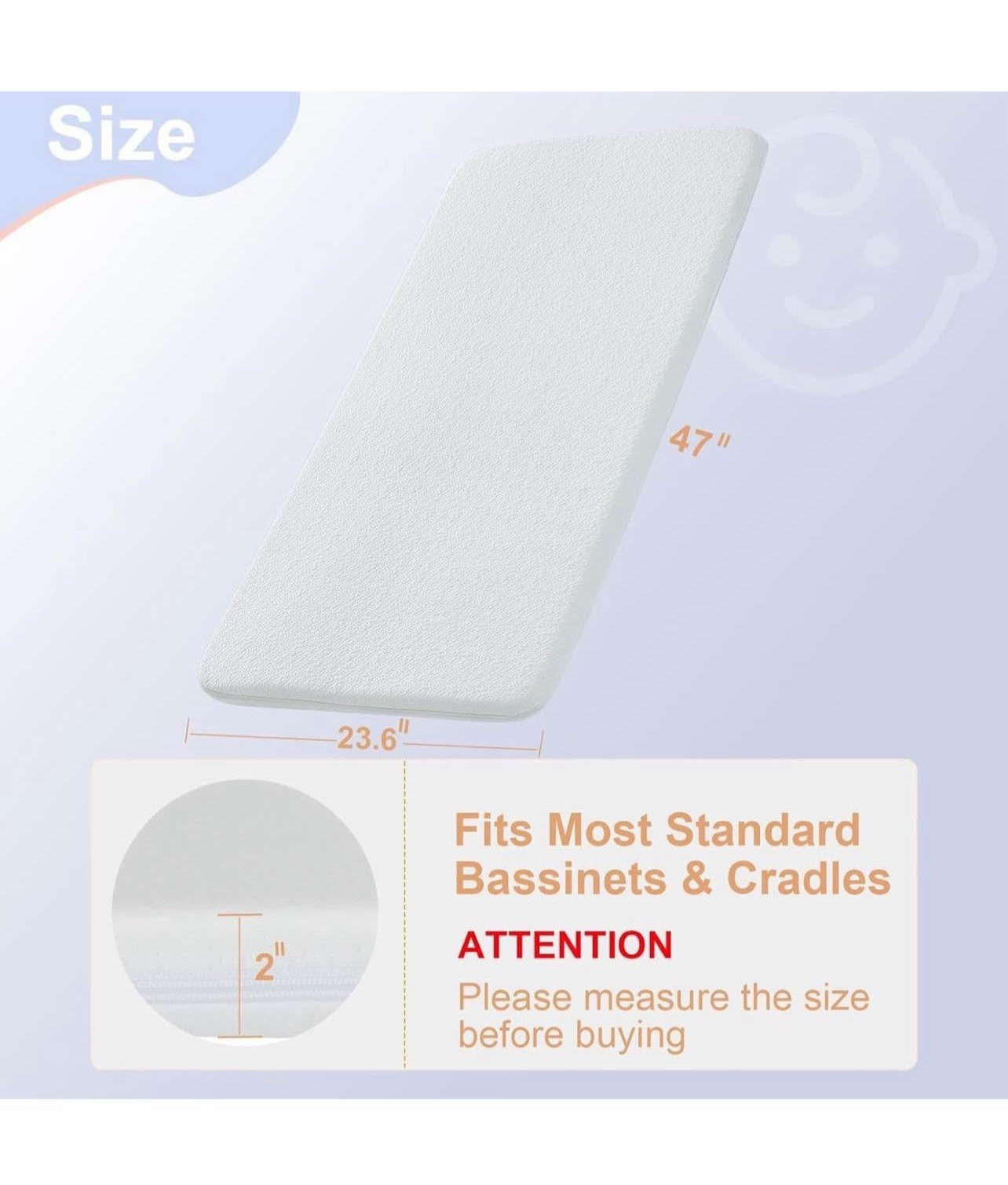 NeoBorn Baby Bassinet Mattress Pad, 47 x 23.6 Dual Sided Comfort