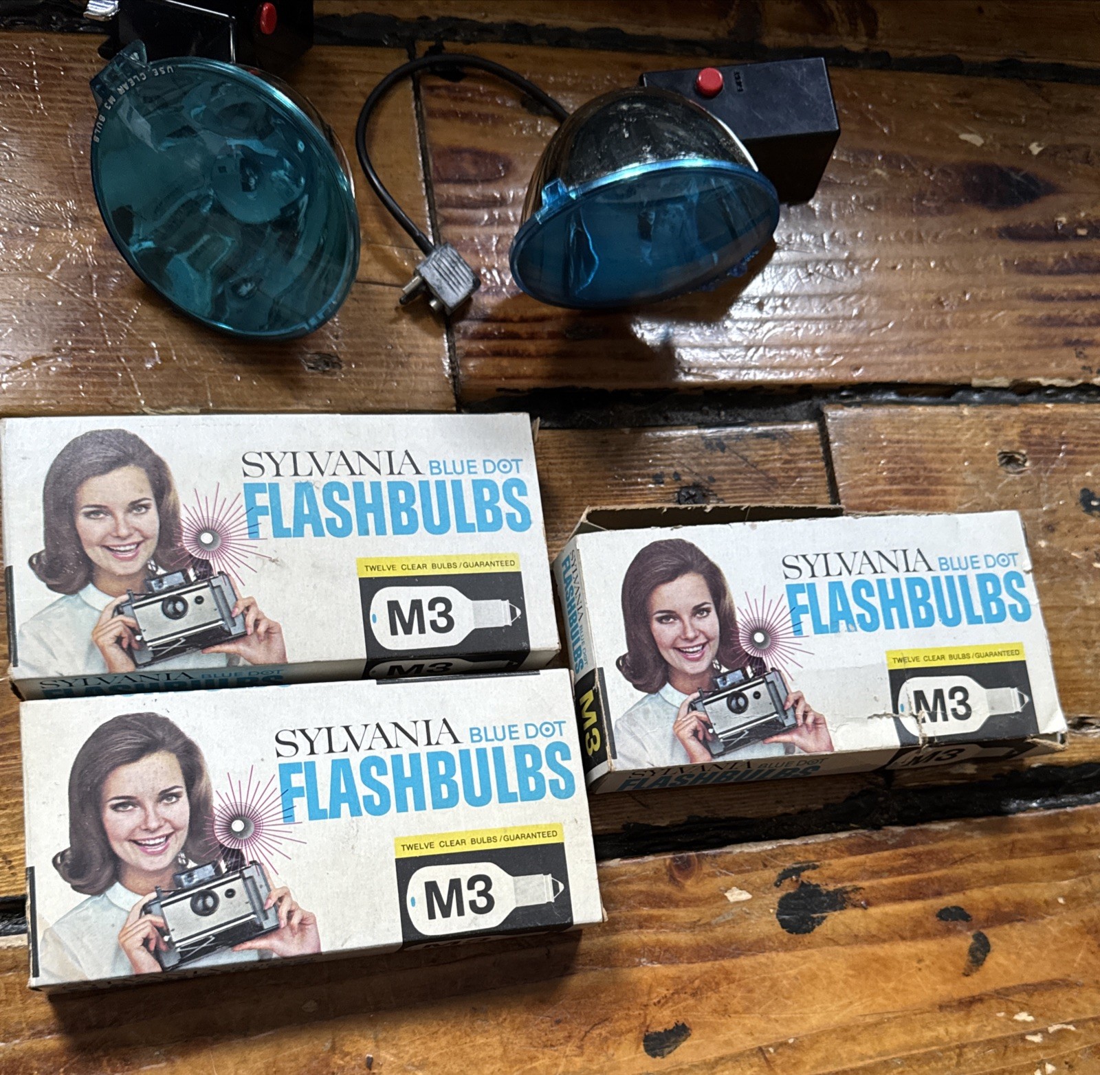 Polaroid Lot Model 268 Bulbs Sylvania Flashbulbs M3 Cold Clips Flashbar Case