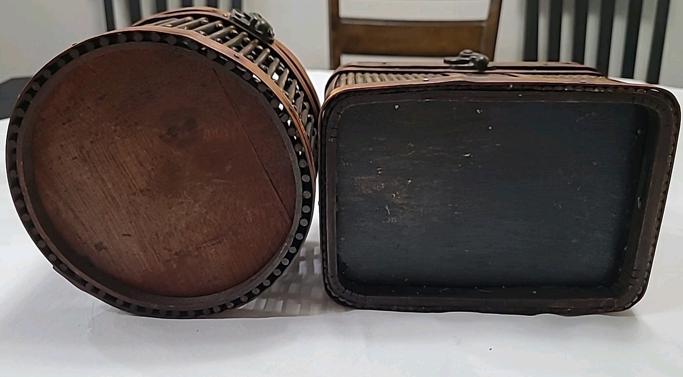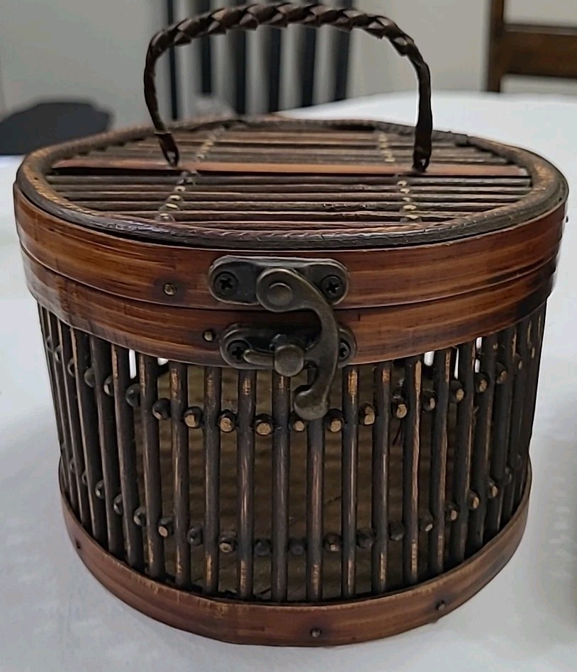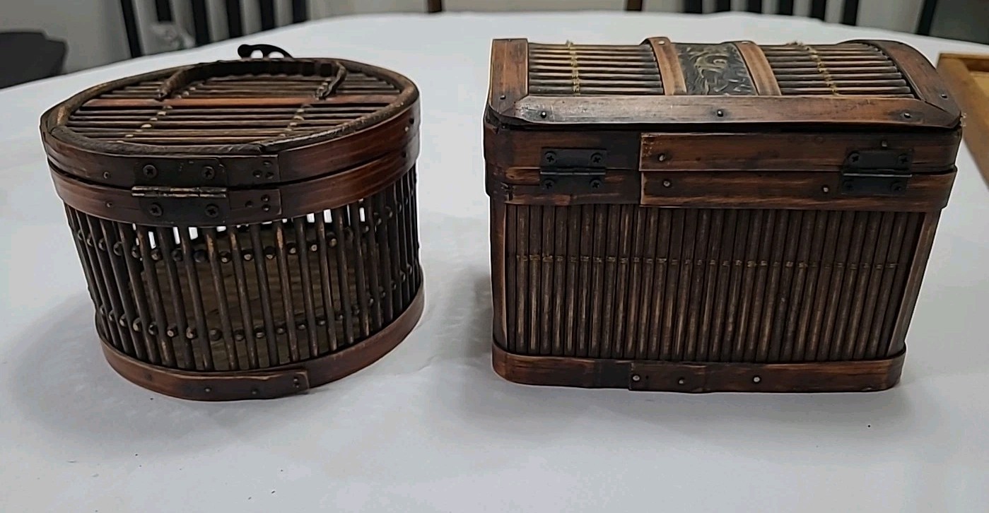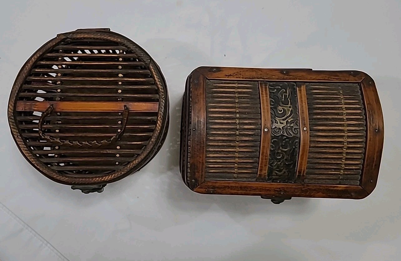 Set Of Two Bamboo Woven Rattan Storage Baskets With Latch Hinge