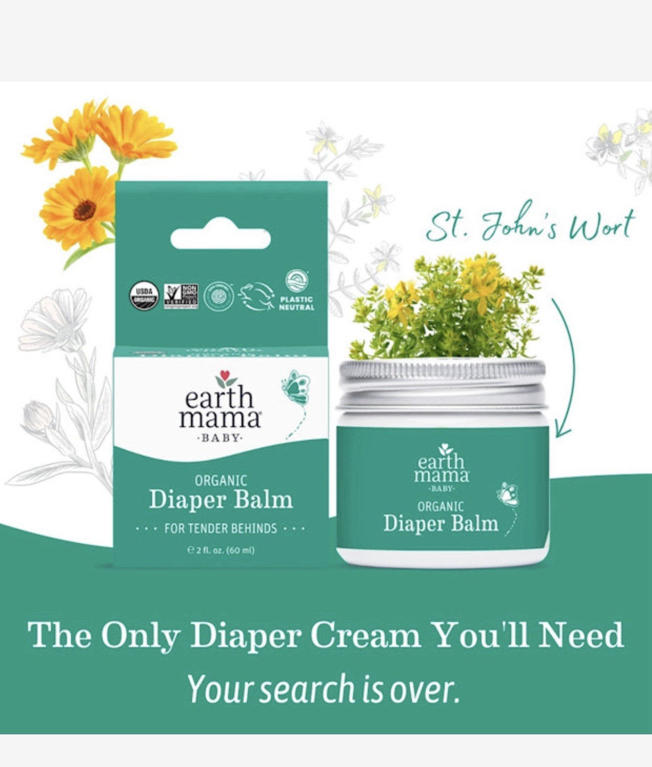 Earth Mama Baby Organic Non-GMO Diaper Balm for Tender Behinds, Zinc-Free, 2 fl
