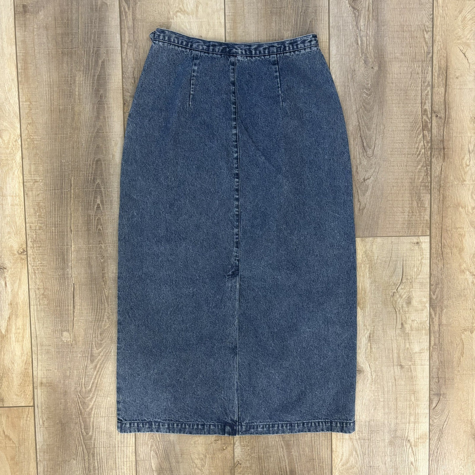 Vtg Y2K Denim Midi Skirt Size 8 Western Ranch Festival Rodeo Prairie 90s Norm