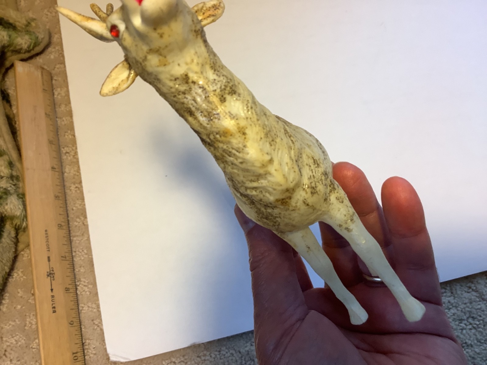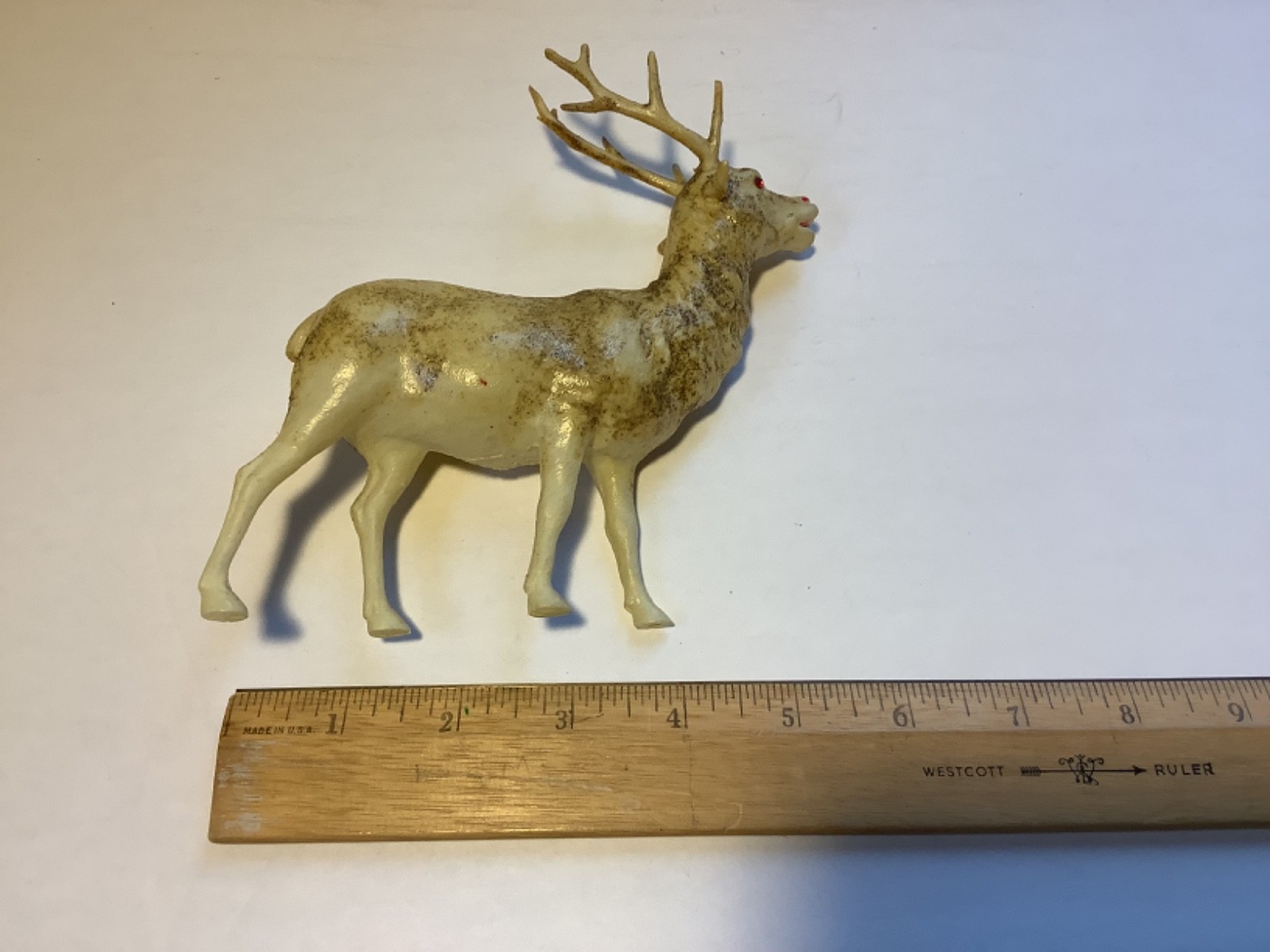 Vintage Celluloid Plastic Reindeer or Buck Deer, red eyes, Made In Japan