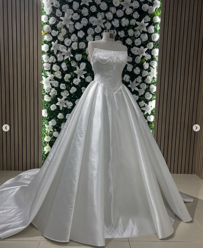 как выглядит Elegant Wedding Dresses Sleeveless Satin Beading A Line Sweep Train Bridal Gown фото