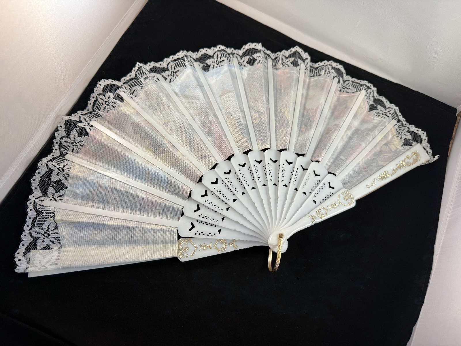 как выглядит Spanish Style Folding Hand Fan With Flamenco Bullfighters from Spain White/Gold фото