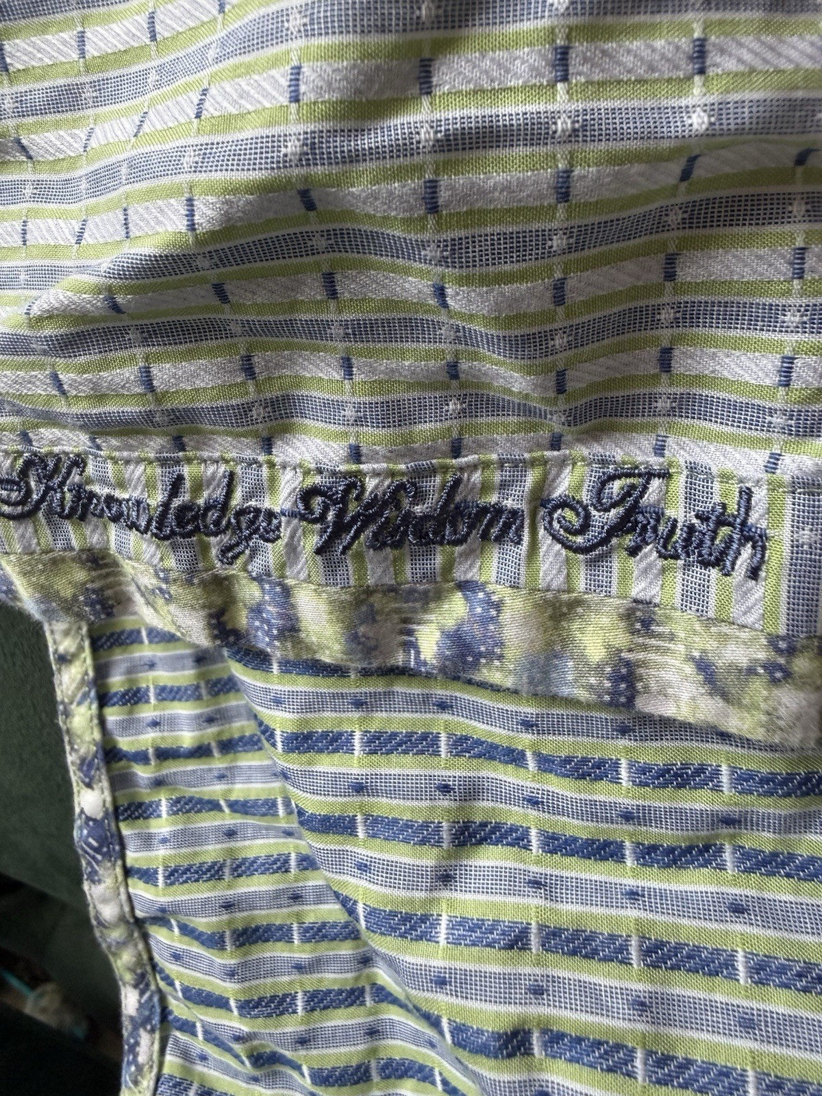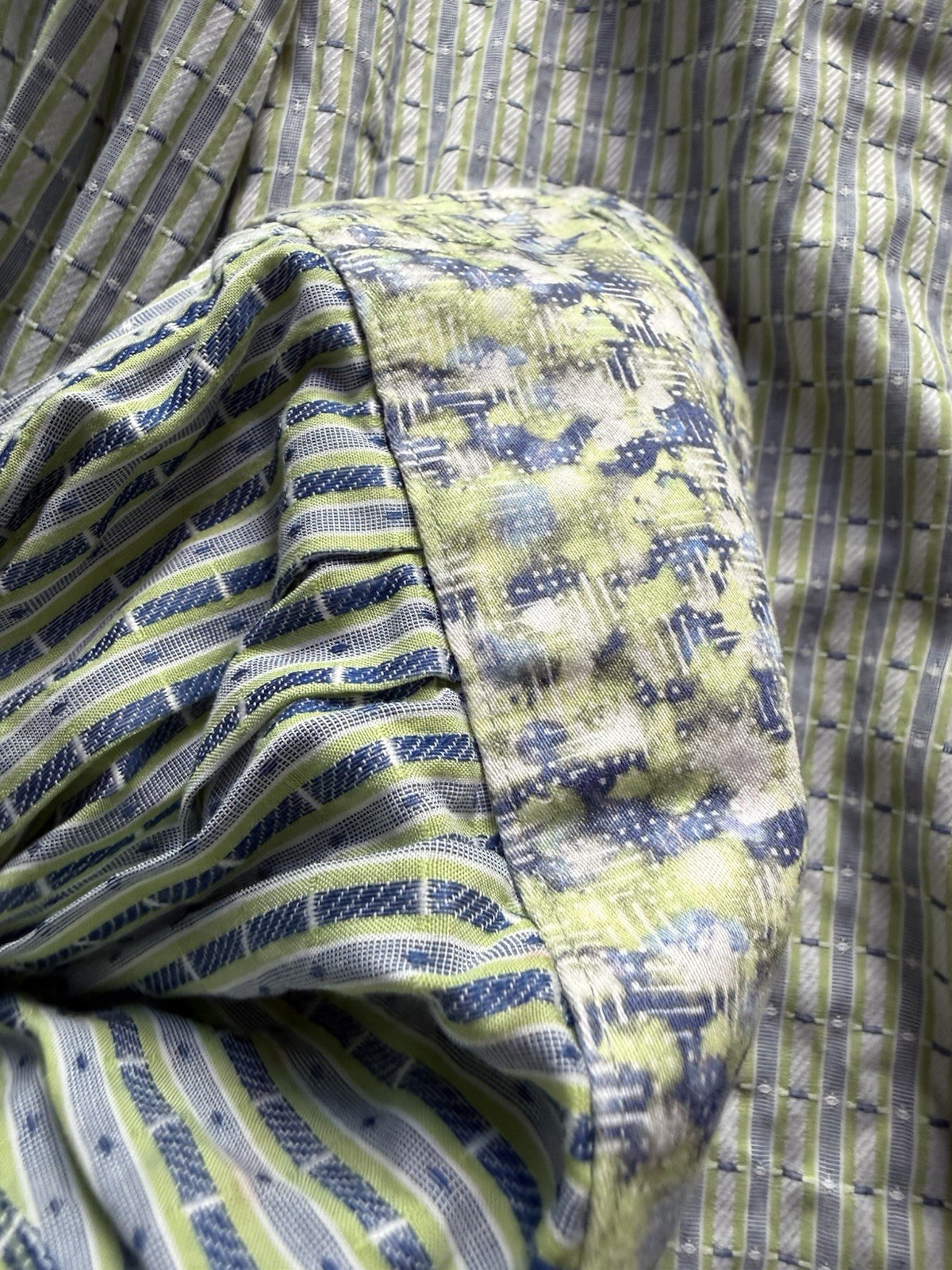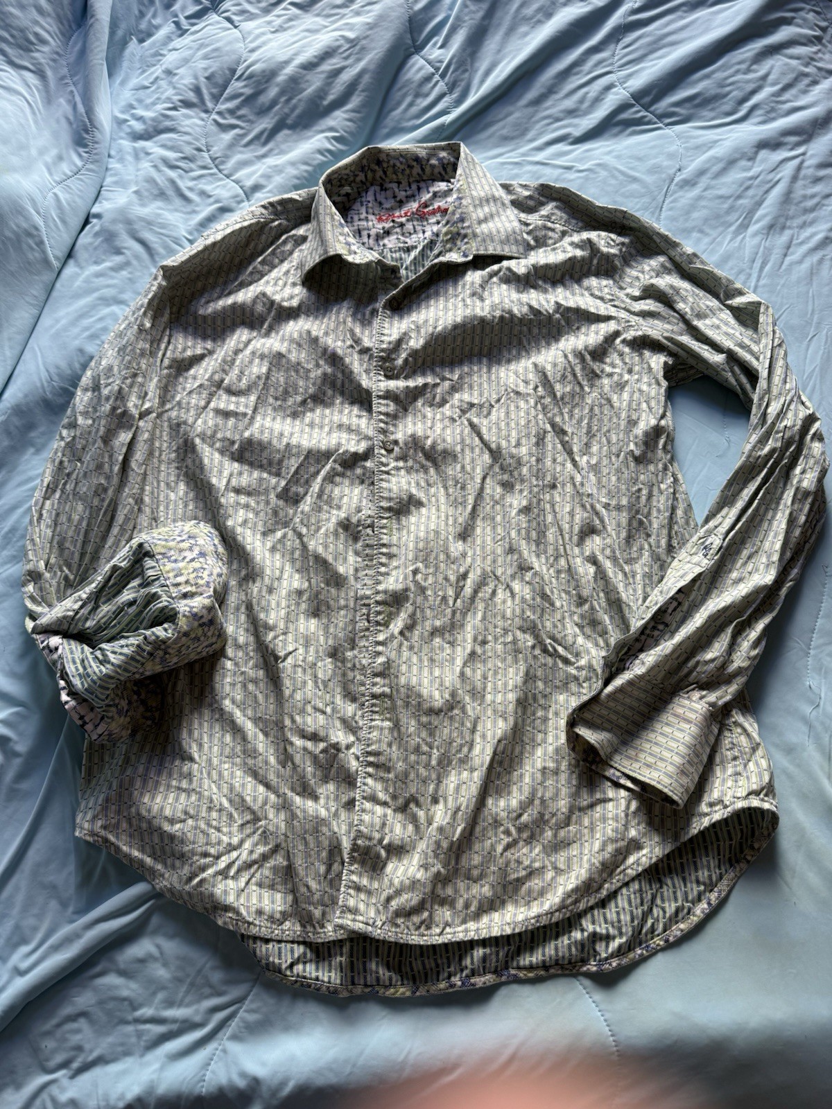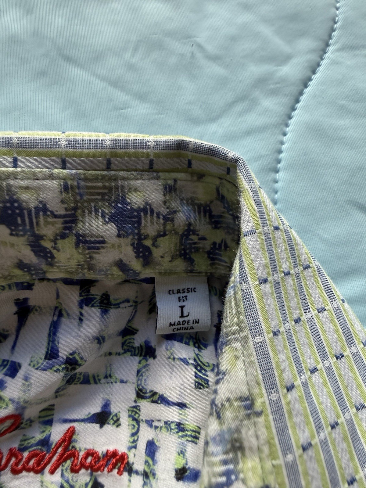 как выглядит Robert Graham Classic Fit Shirt L Green Blue Stripe Contrast Cuffs Embroidery фото