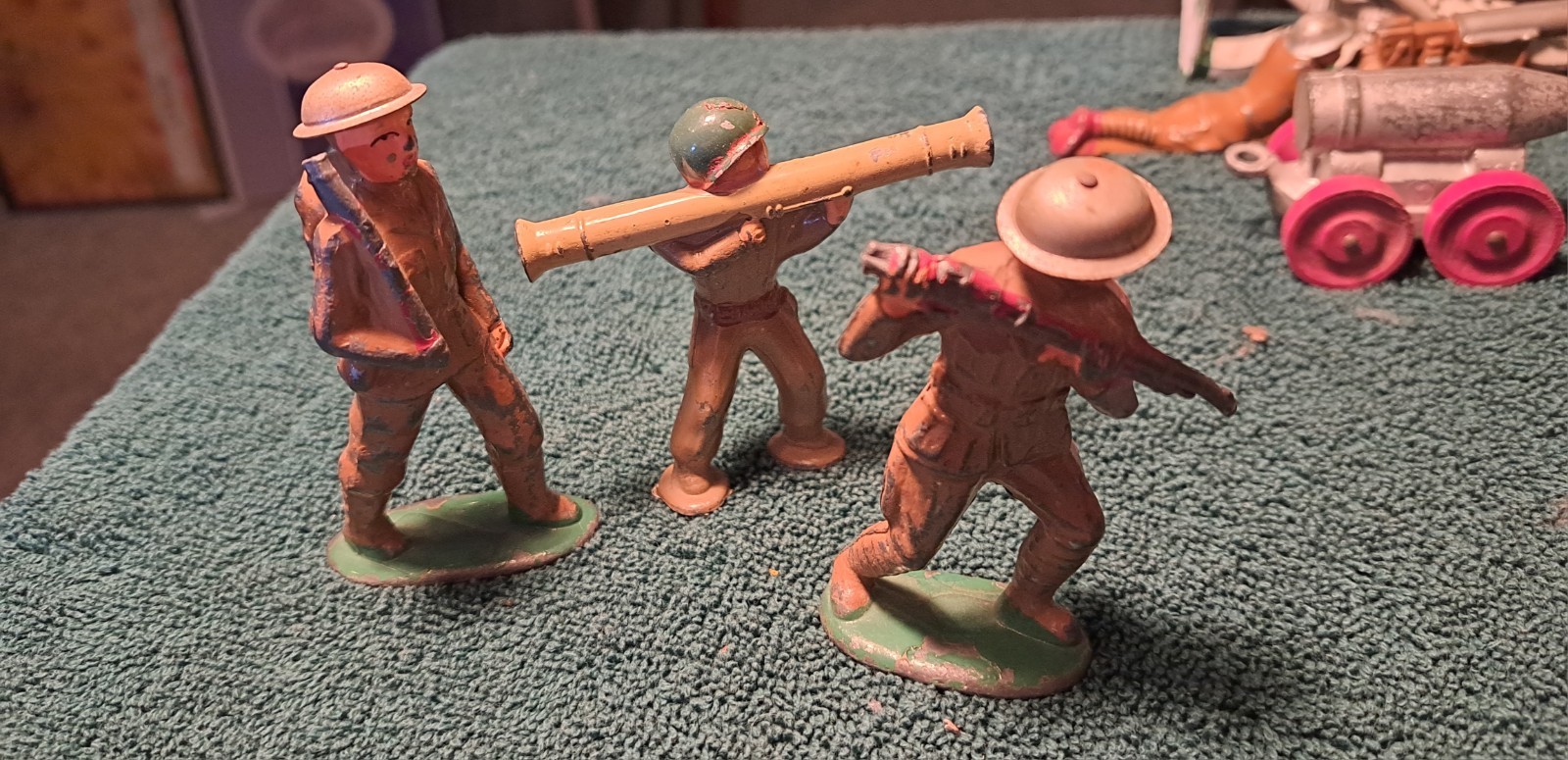 как выглядит 1930s Barclay Manoil Lead Soldier Bomb Cart Lot- фото