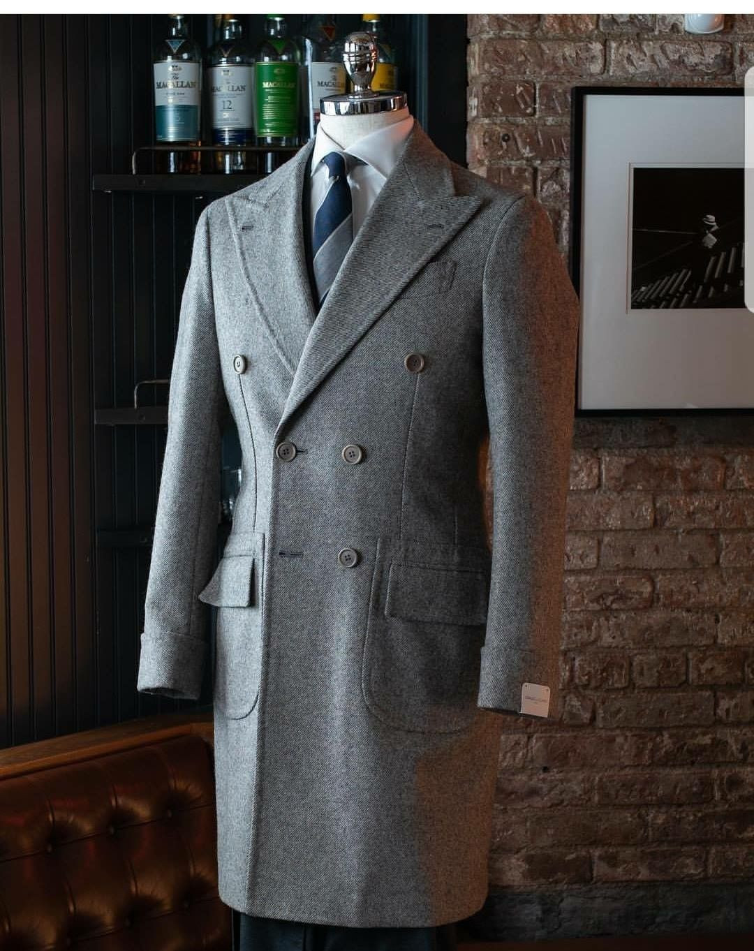 как выглядит Grey Wool Mens Long Overcoat Peak Lapel Business Cashmere Winter Men Long Coat фото