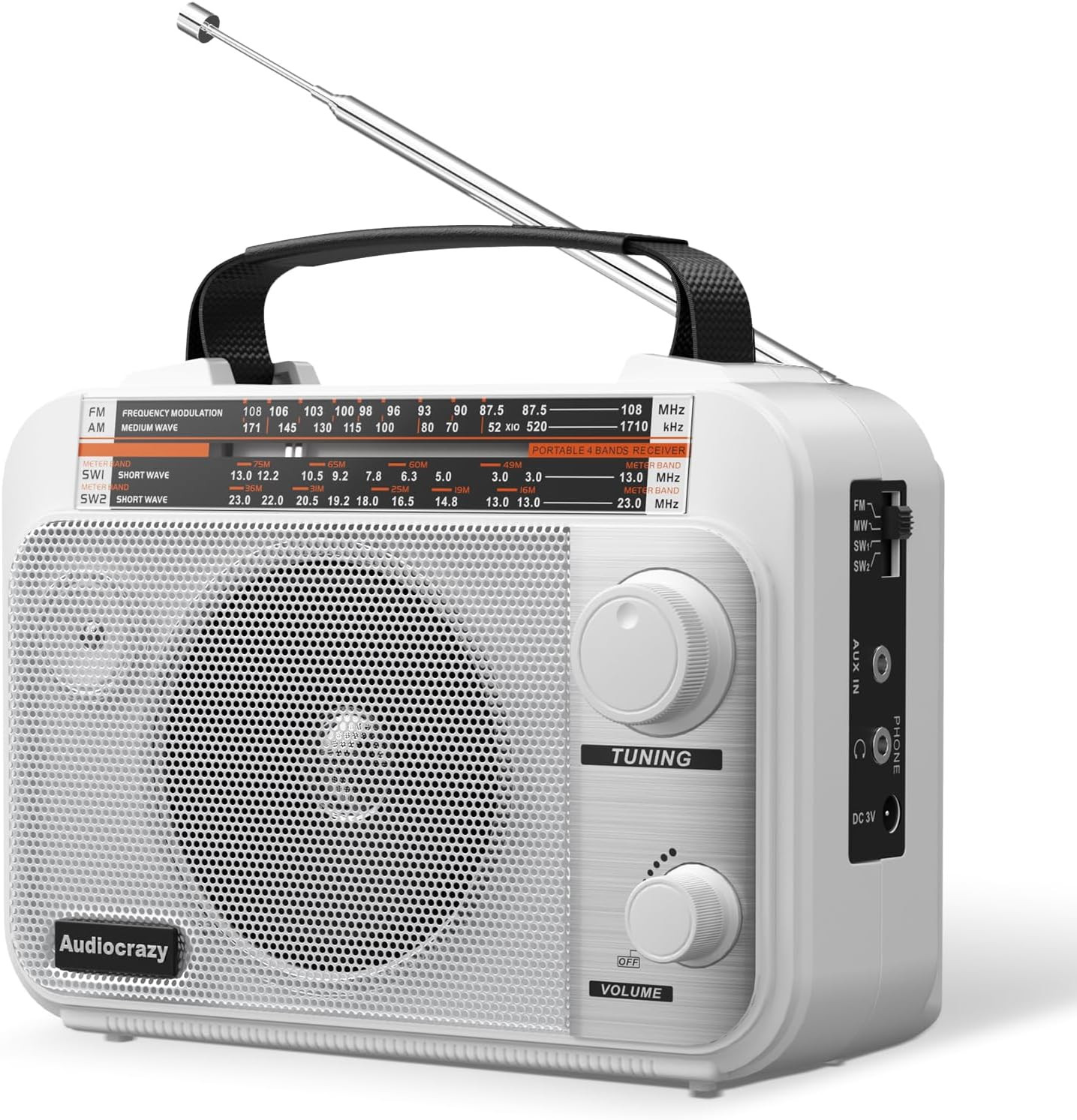 Radio Bands Supported: AM/FM/SW1/SW2