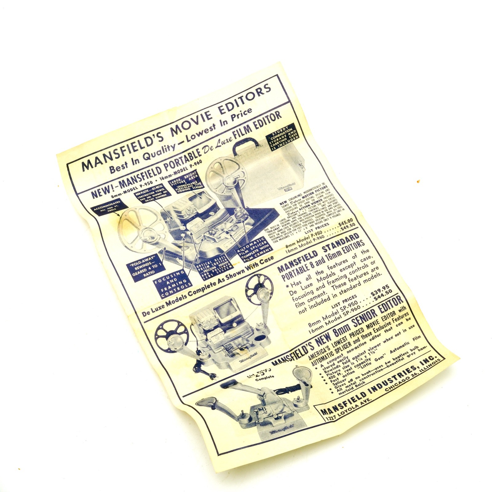 Mansfield Holiday Automatic 8mm 16mm Film Splicer w/ Cinement Film Cement