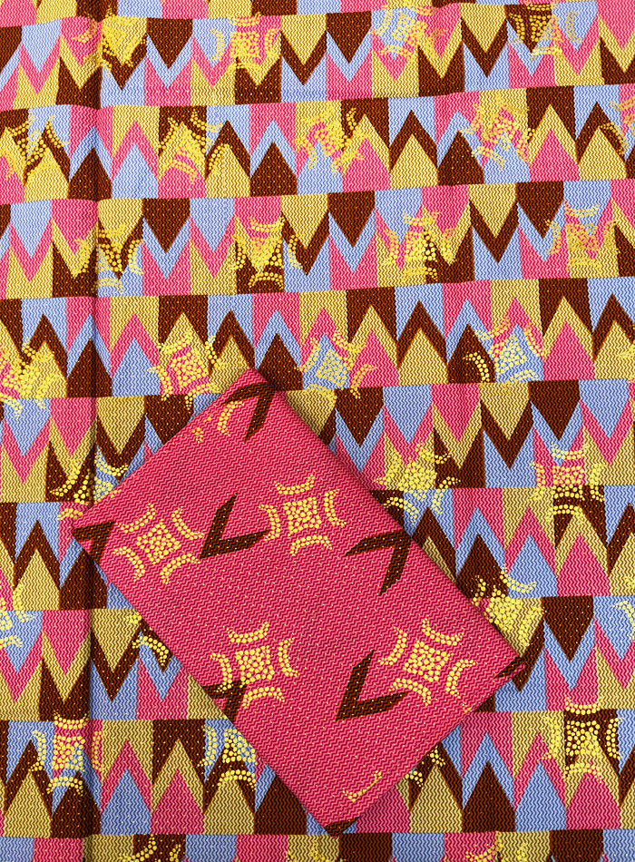 African Metallic Gold Kente Prints- Lilac Brown Pink Yellow-Cream Gold