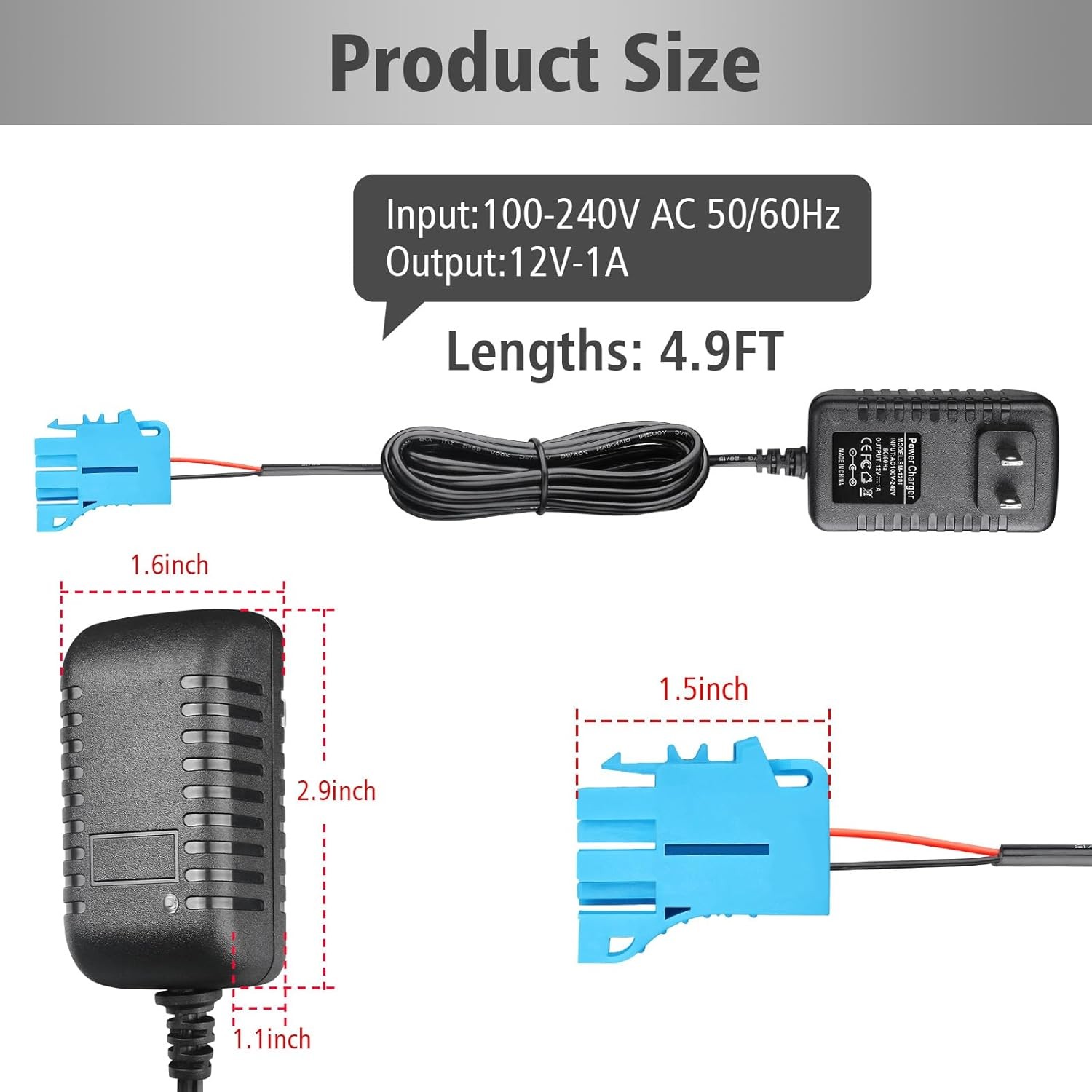 12 Volt Battery Charger Compatible Ride On Toy Powered Ride On Car 12V 1A Ch