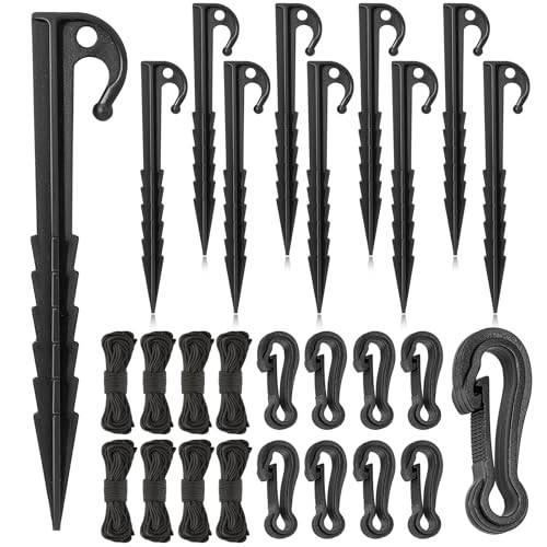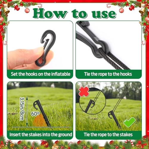 24 Pieces Plastic Inflatable Stakes Set, Include Tent Stakes, Tethers Ropes