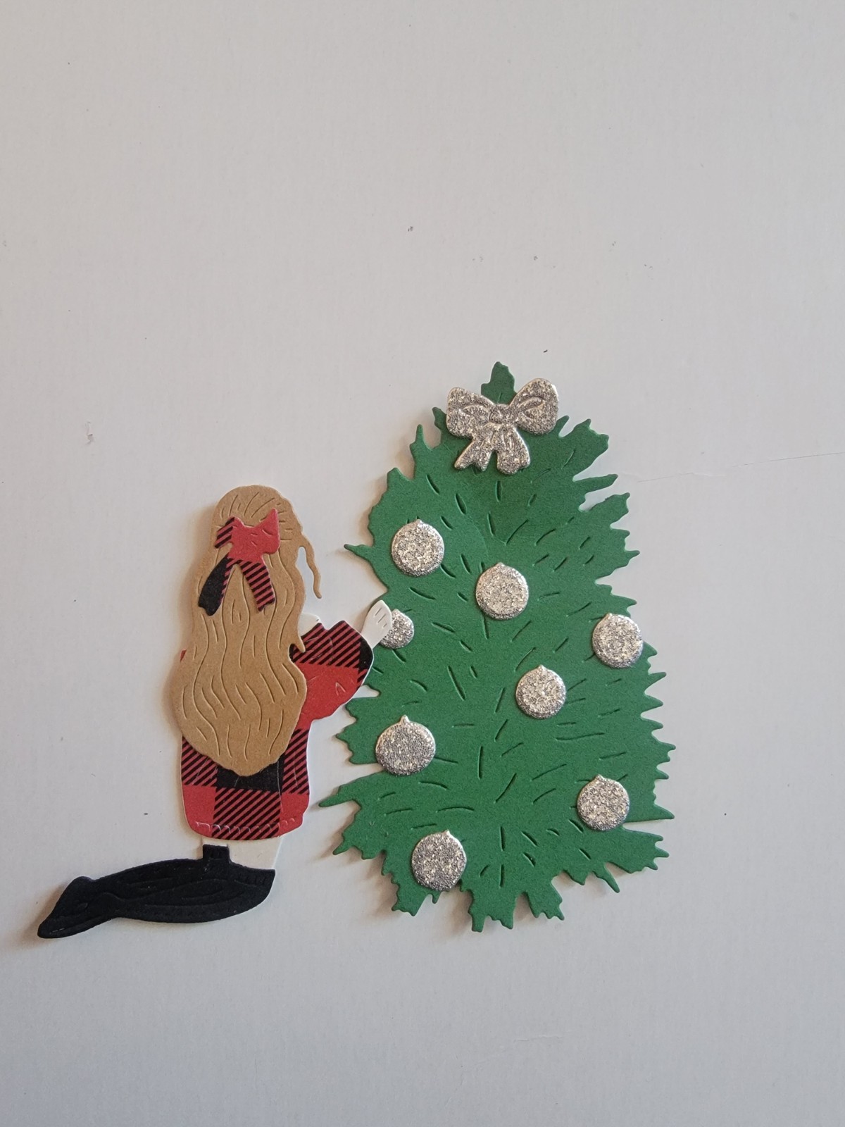 Any 1 Cute Christmas Girl Decorating Christmas Tree Cardstock Die Cut Scrapbook