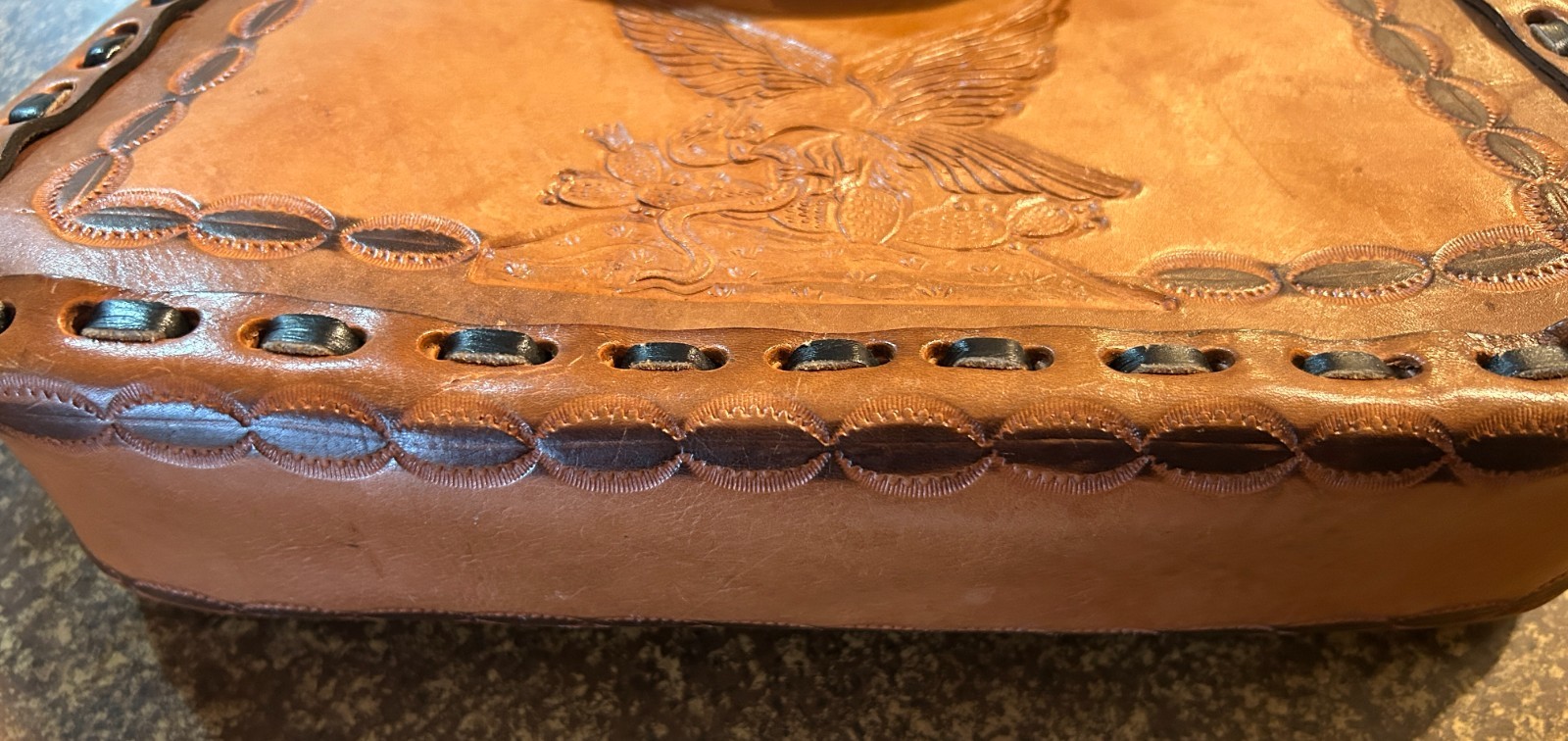 как выглядит 1950s Vintage from Mazatlan Mexican Hand Tooled Leather Shoulder Purse фото