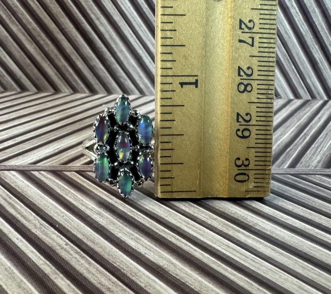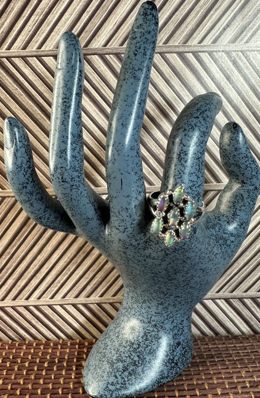 Handmade Sterling Silver Aurora Opal Boho Cluster Ring Sz 9