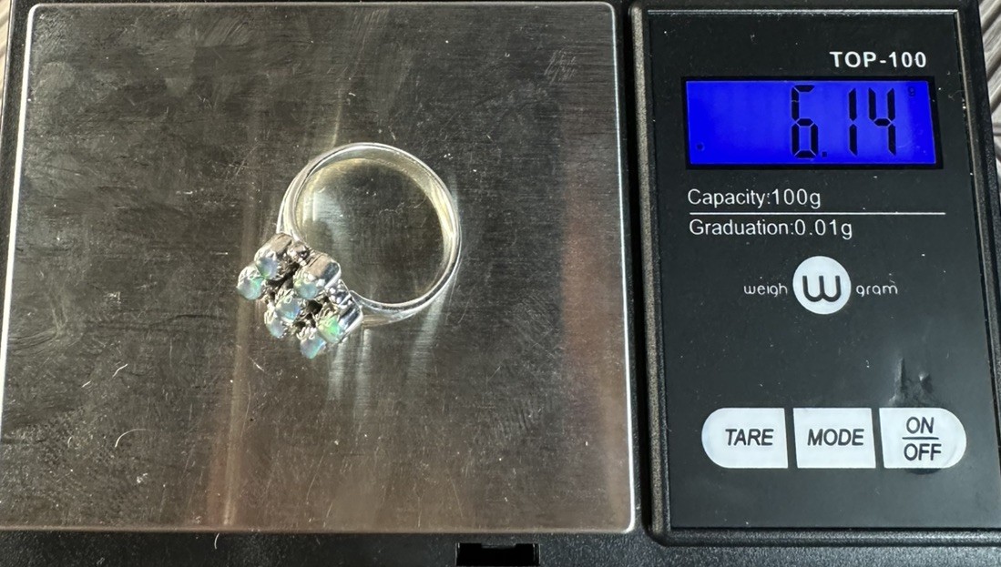 как выглядит Handmade Sterling Silver Aurora Opal Boho Cluster Ring Sz 9 фото