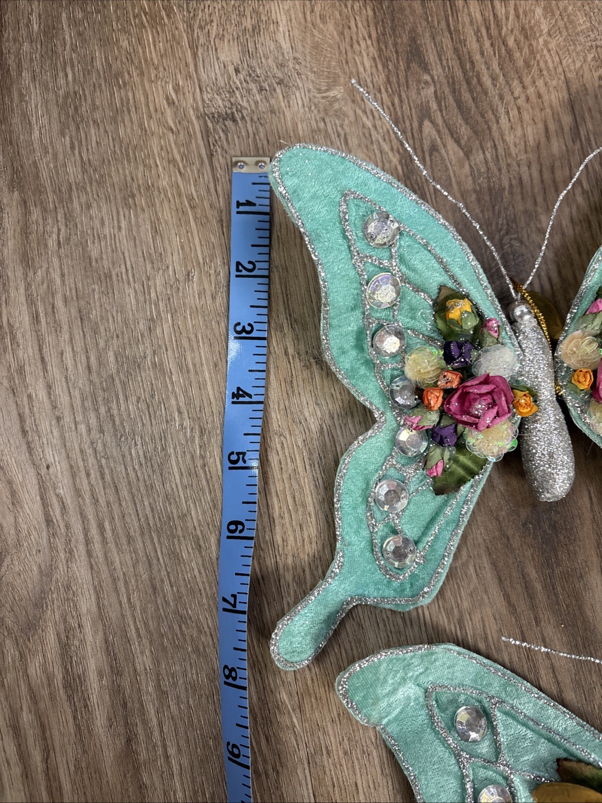 как выглядит KATHERINES COLLECTION SEQUINED 2 BUTTERFLY CLIP ON ORNAMENT MINT/MULTICOLORS фото