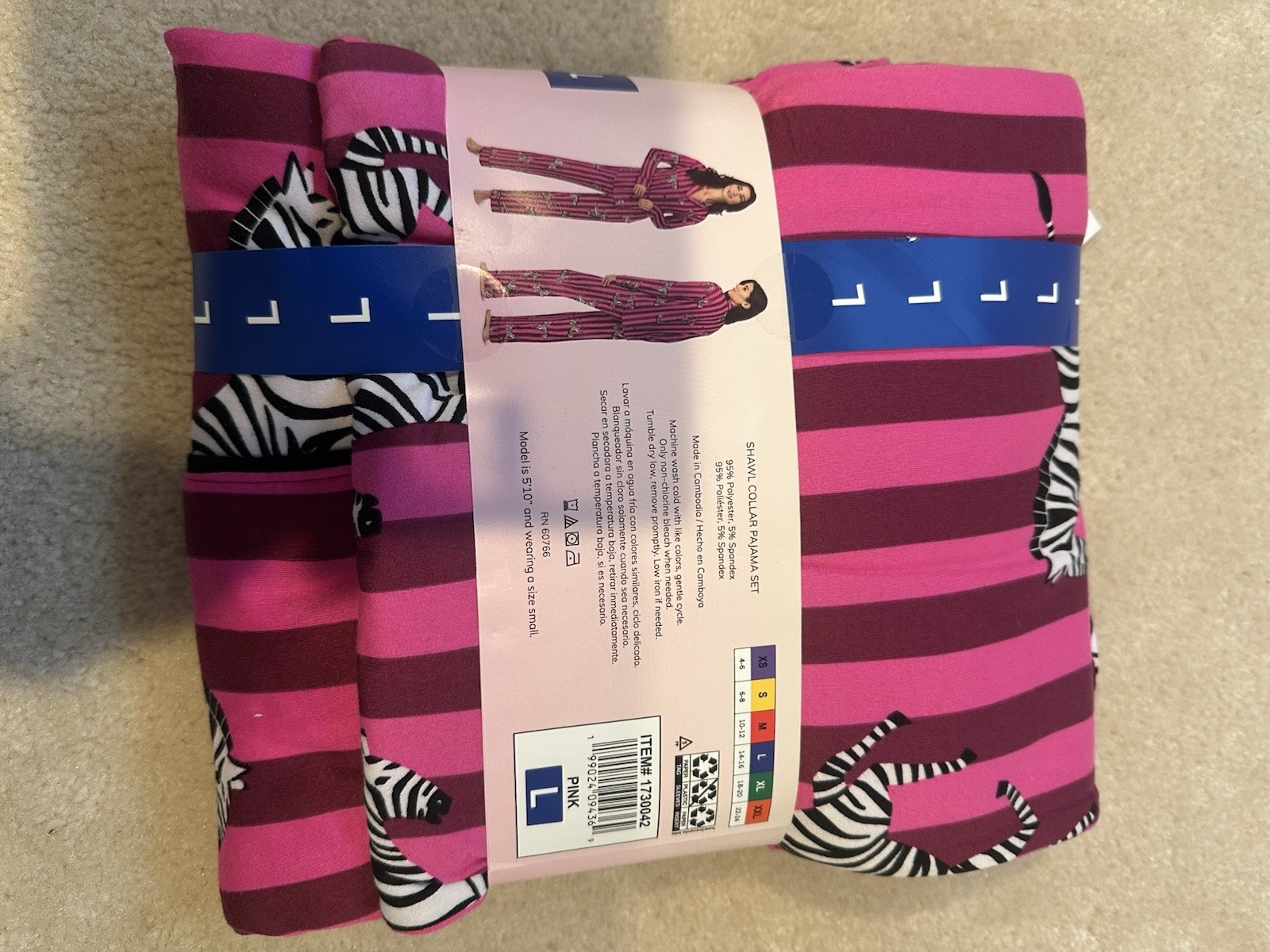 NEW Room Service Women's L Pink Zebra Stripe Pajama Set Button-Up