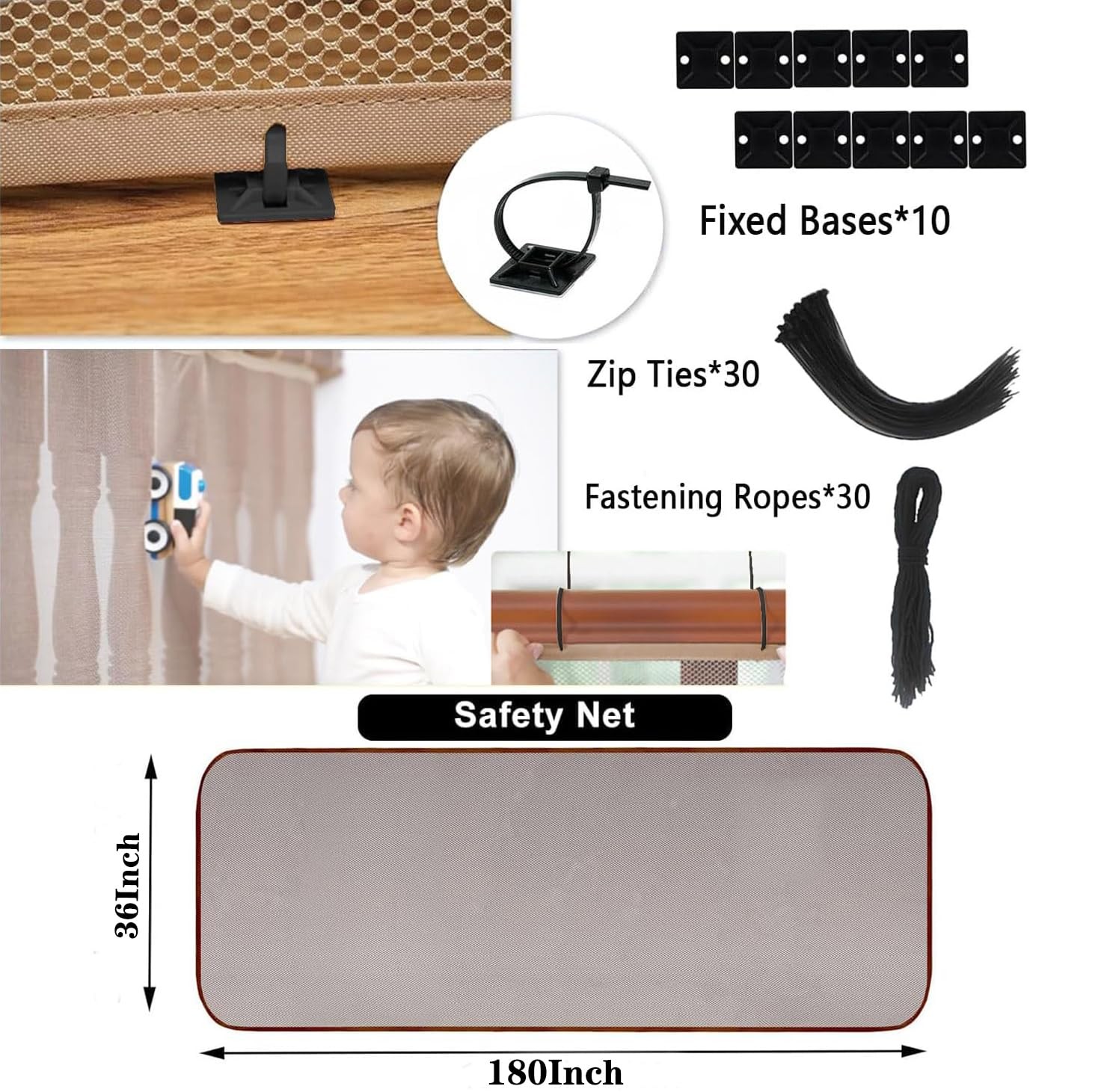 Balcony Netting for Pets, Stairway Net for Balcony, 15ft x 3ft Banister Guard