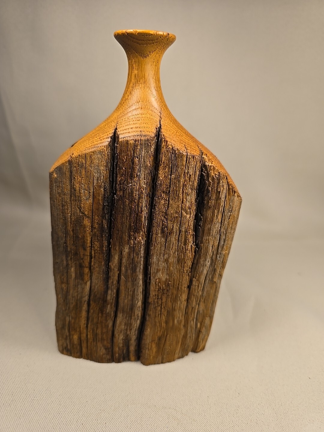 Vtg Hand Turned Burl Wood Vase Live Edge Wooden Sculpture Almost 7 Character