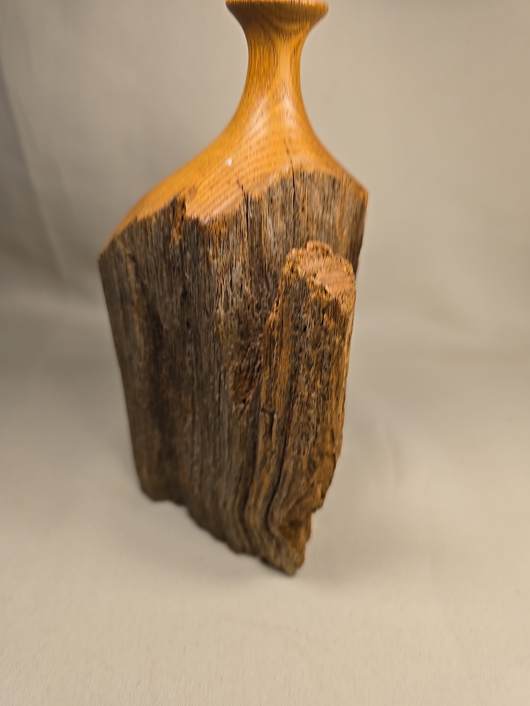 • Vtg Hand Turned Burl Wood Vase Live Edge Wooden Sculpture Almost 7 Character